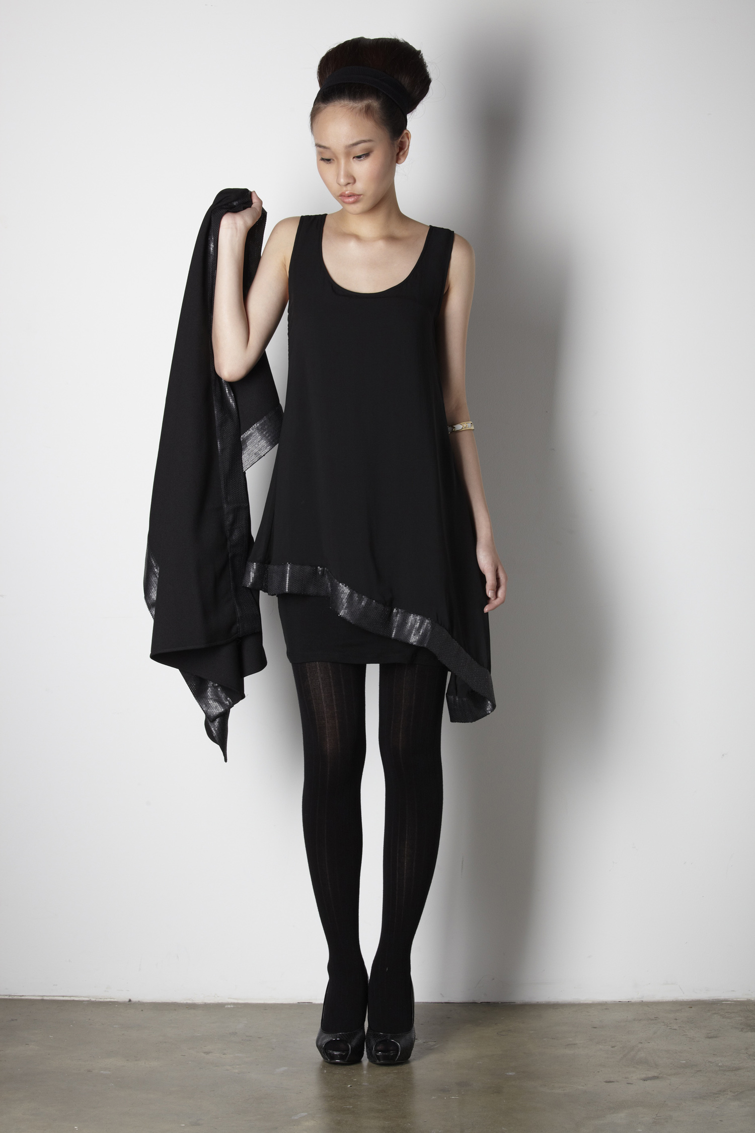 Sequined shawl Contrast sequined panel along both lengths of the shawl Sequin detail is on the reverse side as well