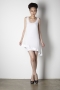 Sleeveless asymmetrical sequined dress Sheer overlay with contrast sequined hem Body of the dress is stretchy Flared silhouette Double layered