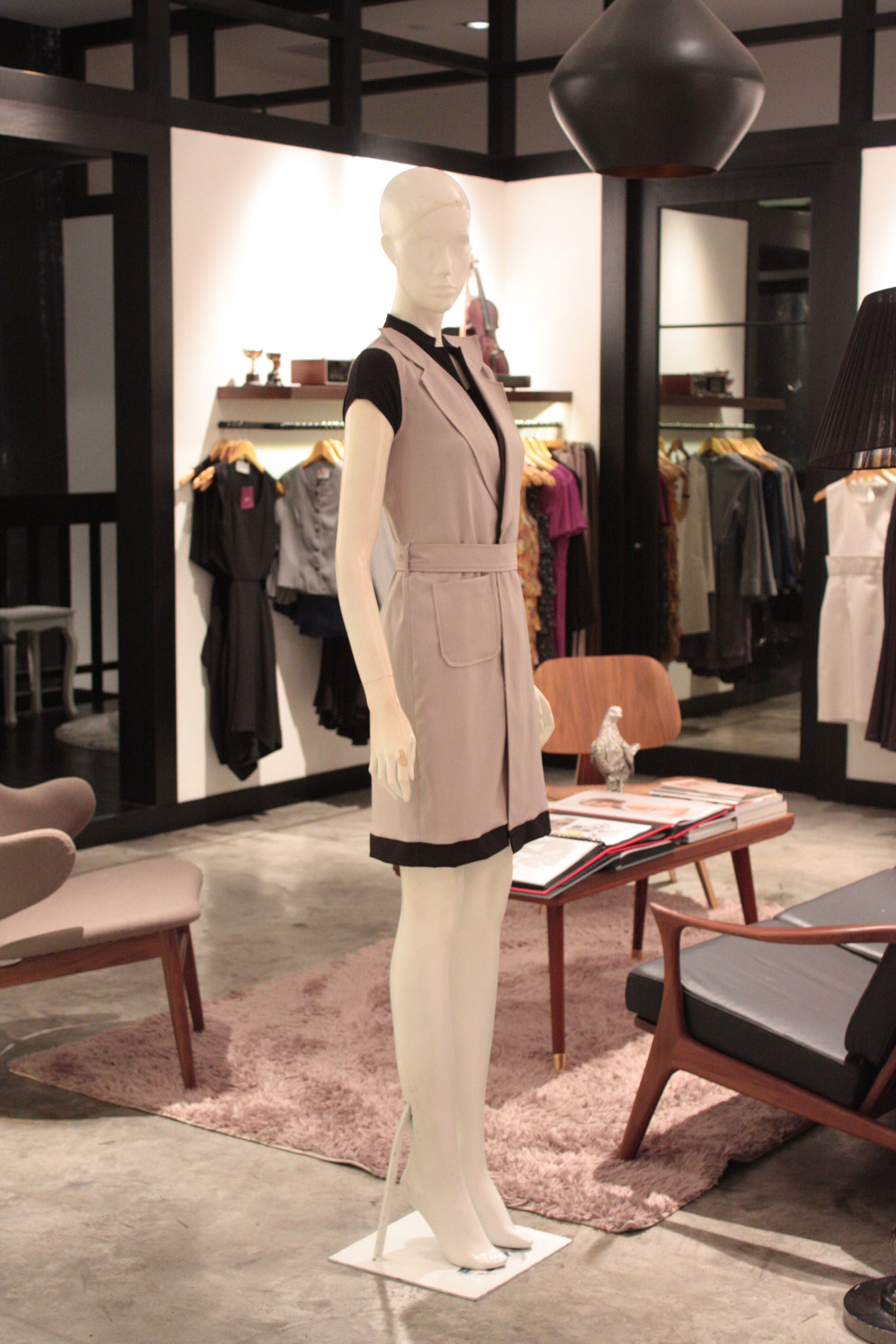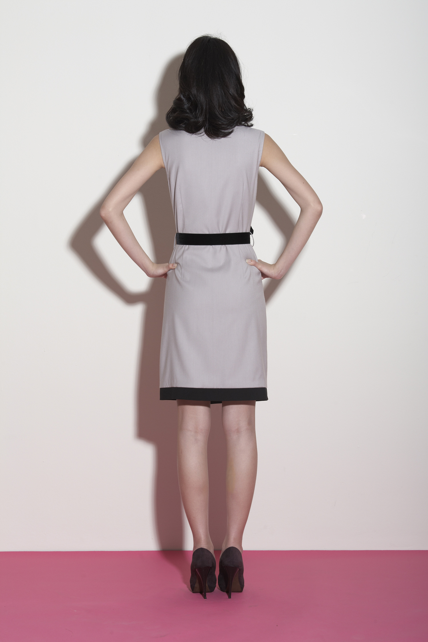 Sleeveless two-tone wrap dress/jacket with a Mandarin collar