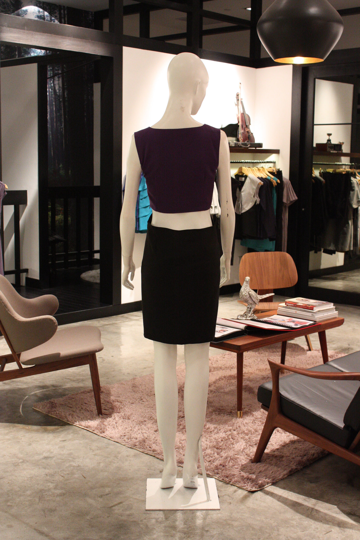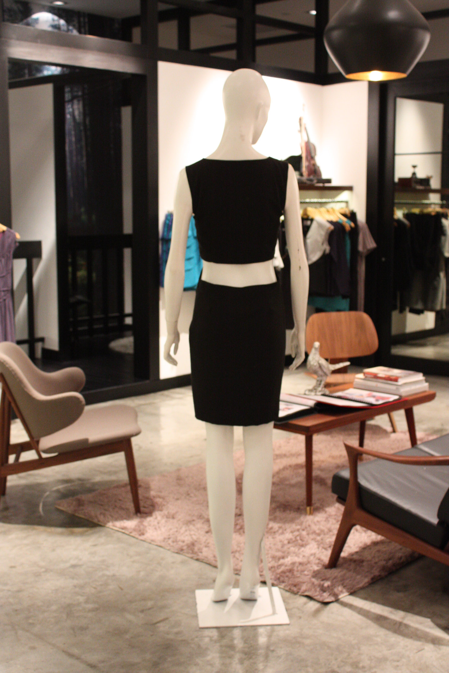 Sleeveless dress with a pencil skirt Round scoop neckline Features cutouts at the sides of the waist and along the back Concealed side zip on both the top and bottom of the dress Fully lined with acetate lining