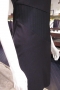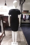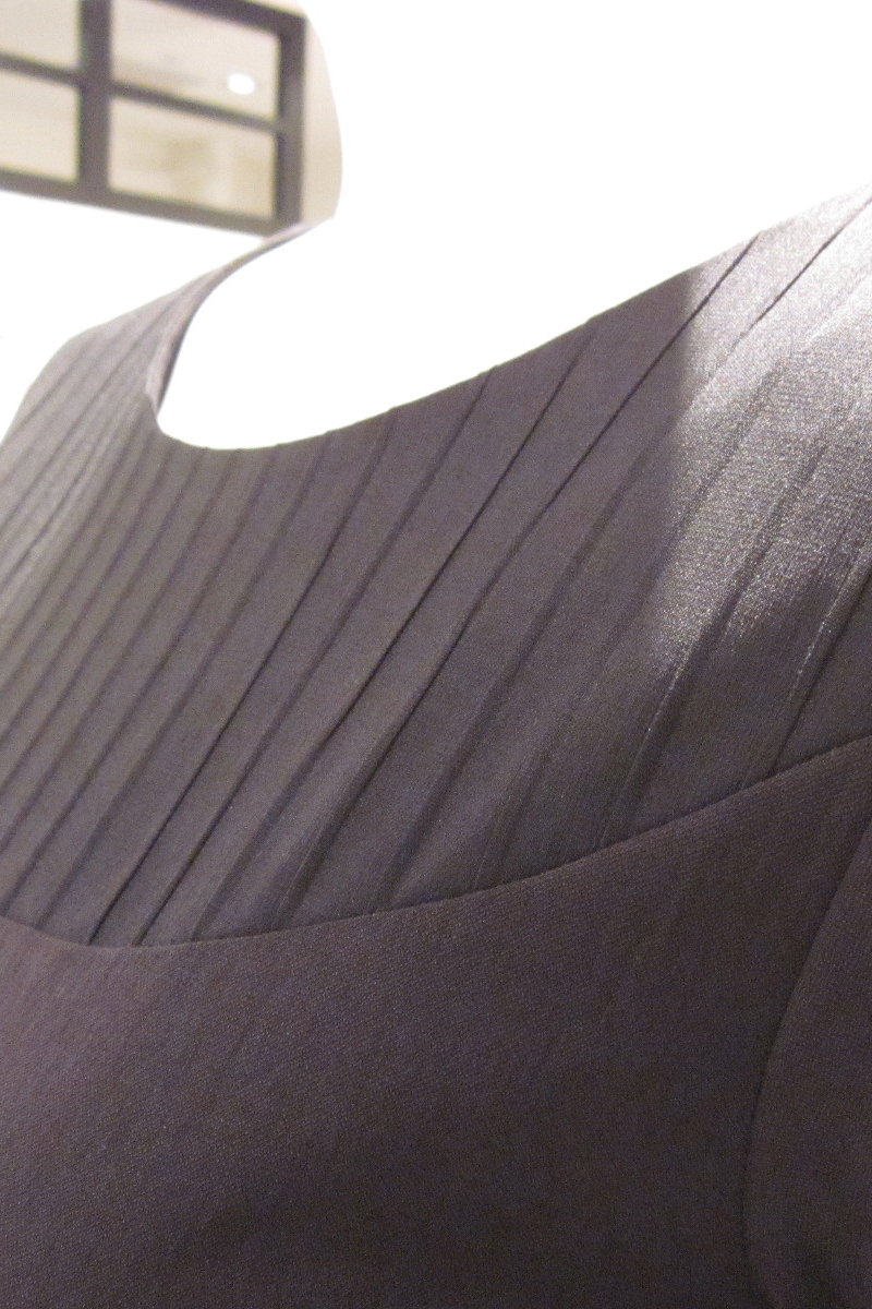 Short sleeved dress with contrast textured material Contrast vertical stripes along the neckline Contrast asymmetrical vertical striped detail around the waist running from the front to the back Concealed centre back zip with hook and eye; Back slit