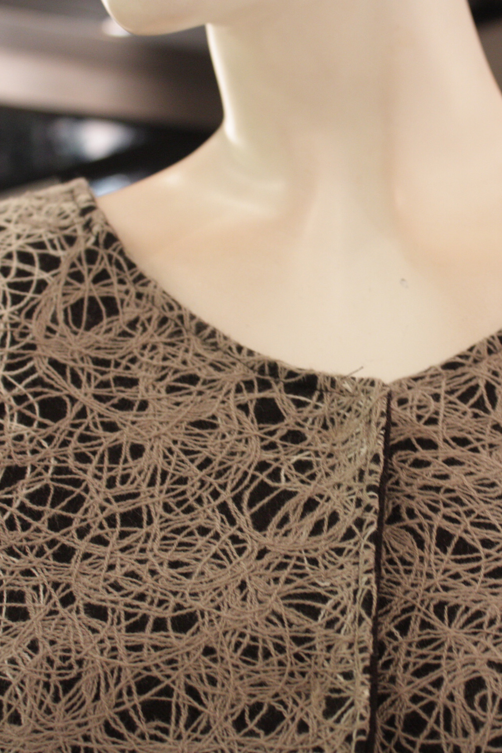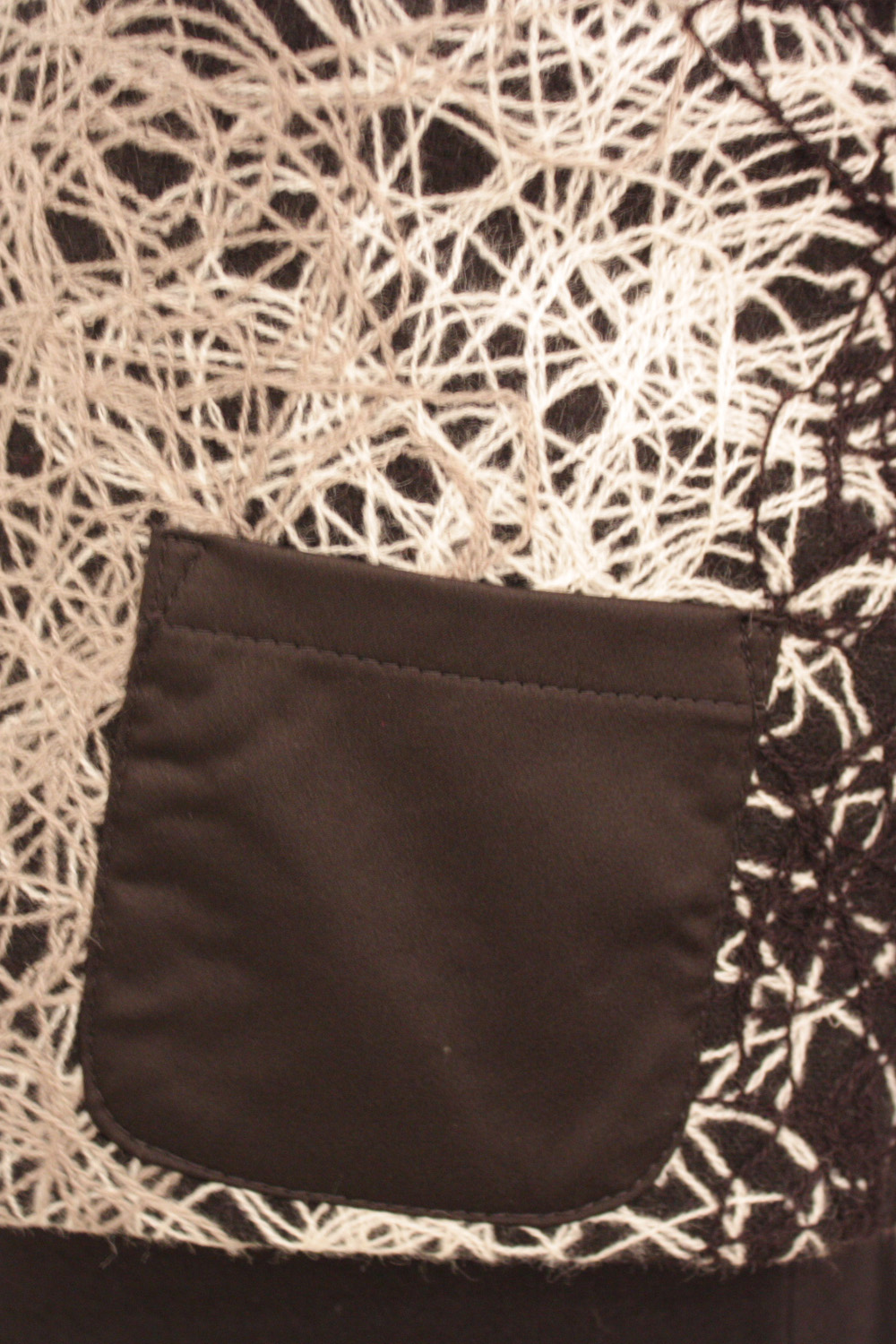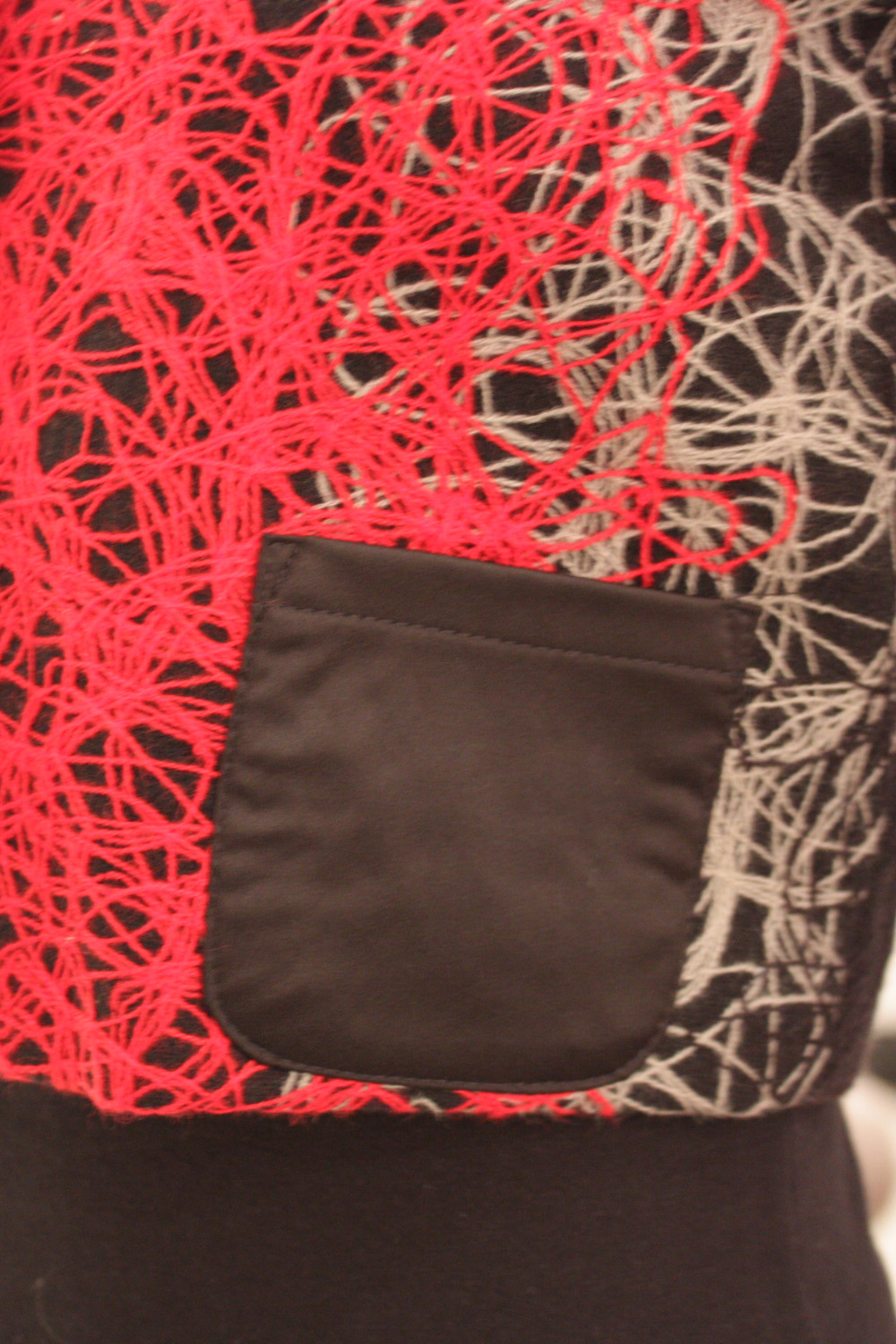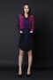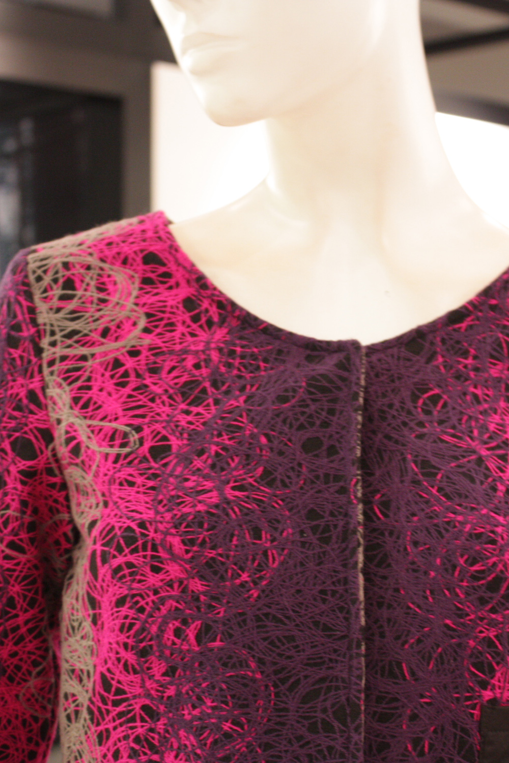 Long sleeved round neck cropped jacket 3 Concealed press-studs running down the centre front Features a thick textured multicolored fabric Contrast plain front pocket at the bottom left Fully lined with acetate lining