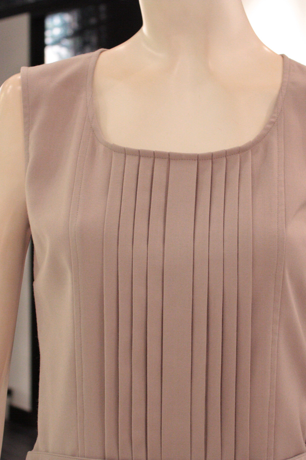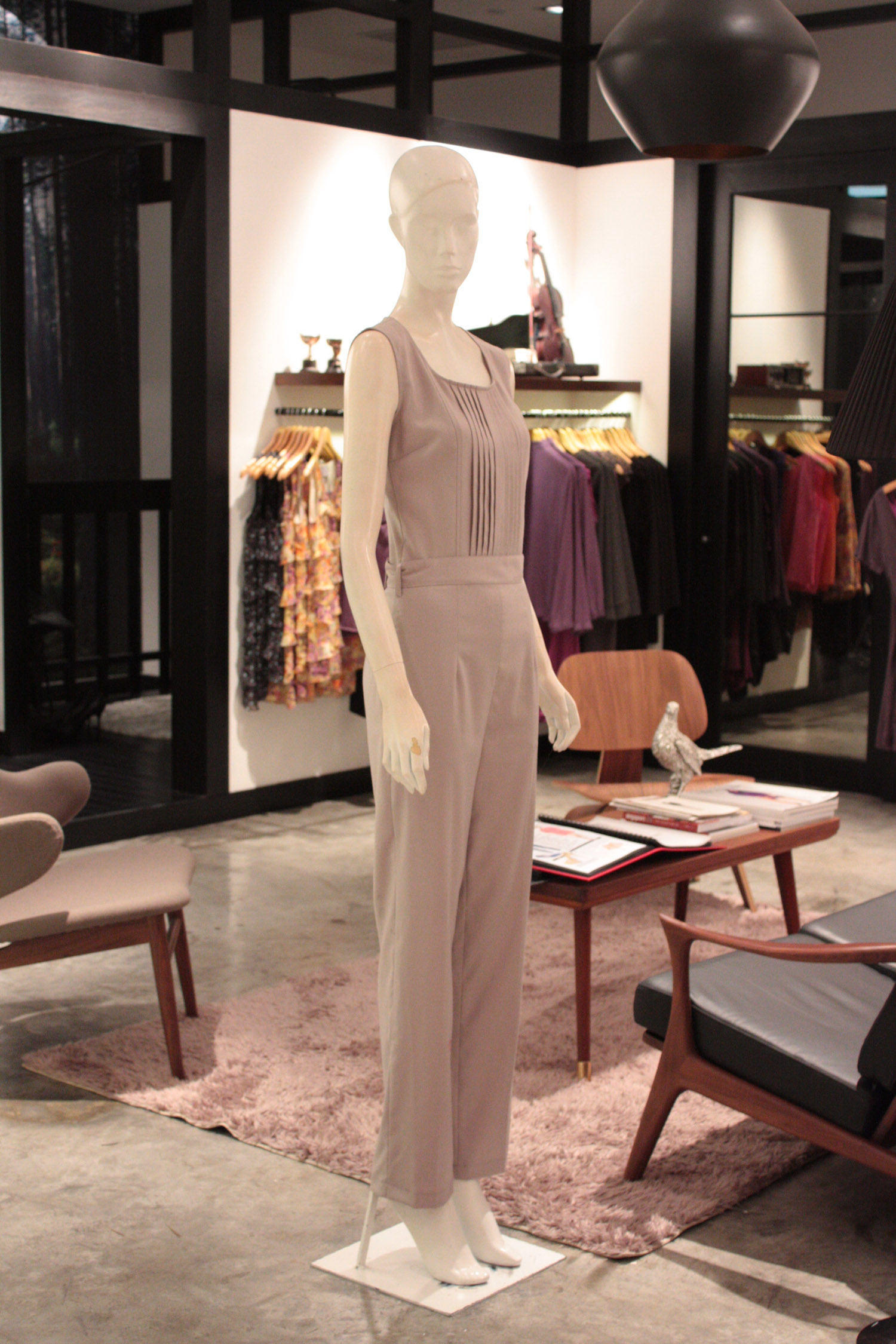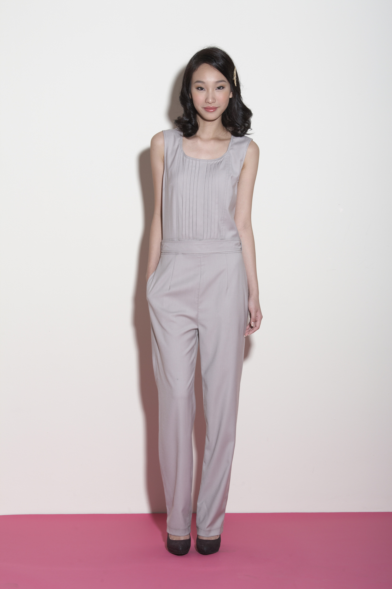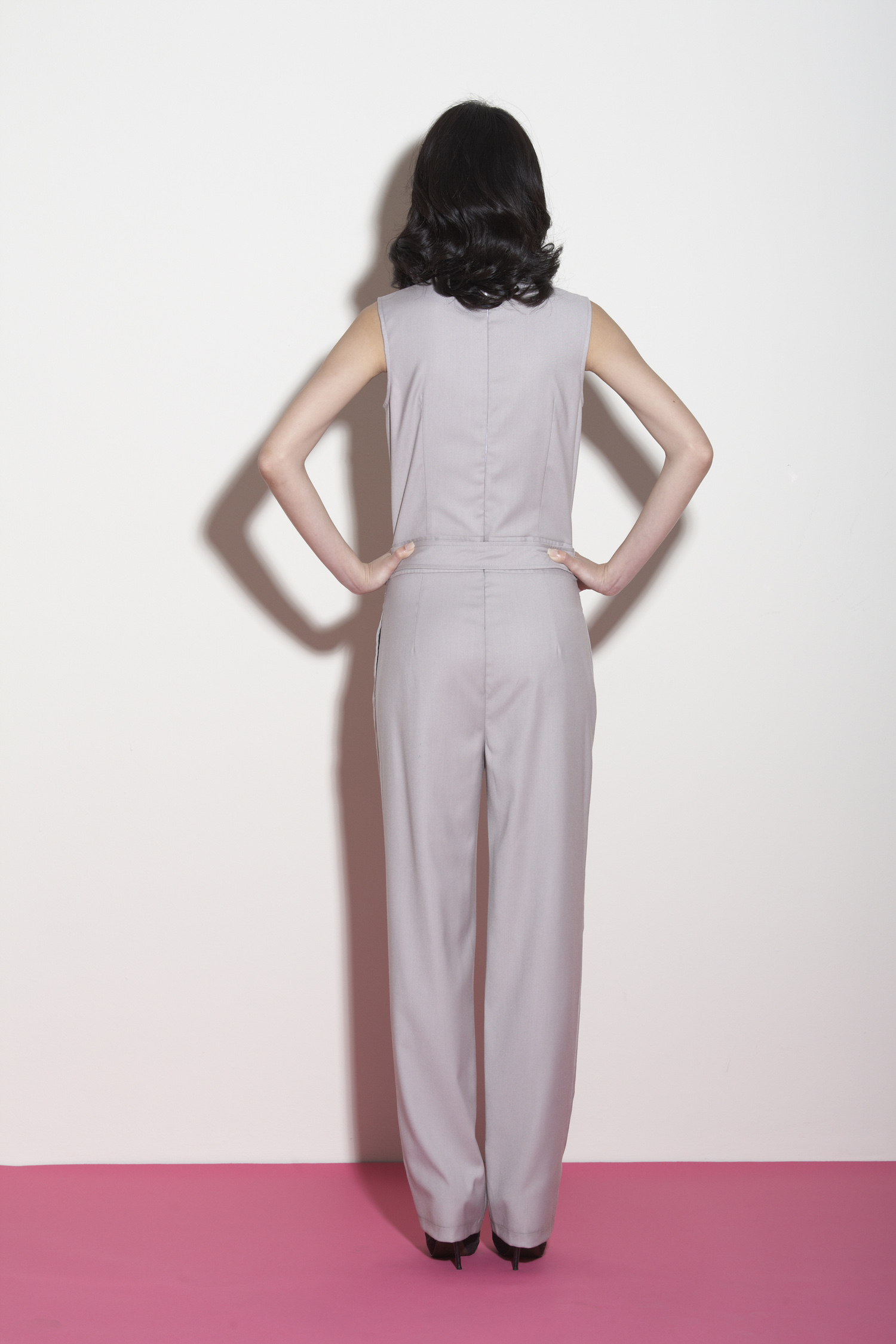 Sleeveless waisted straight-cut jumpsuit with a round neckline