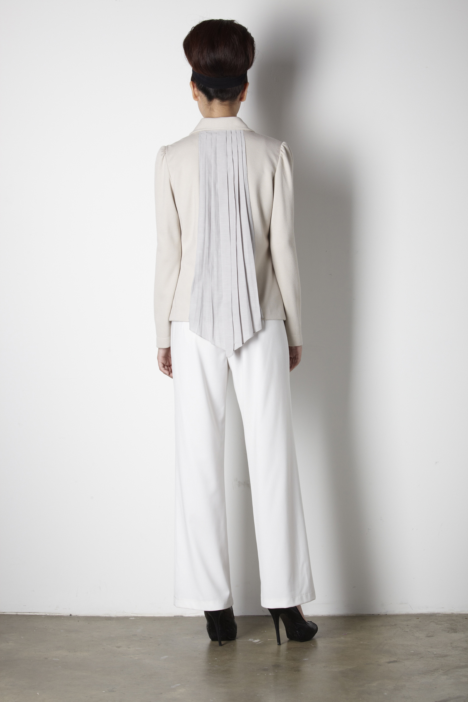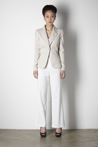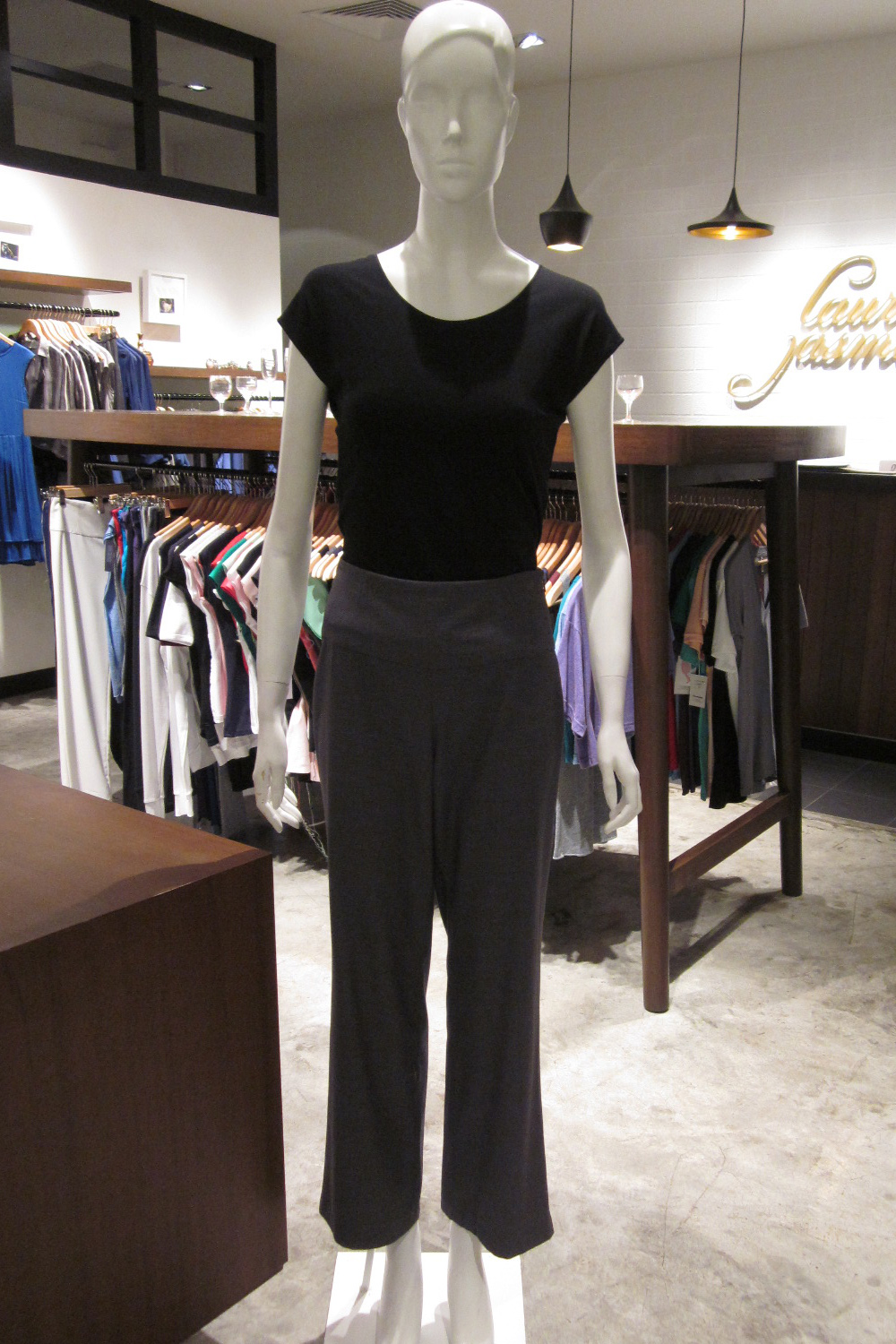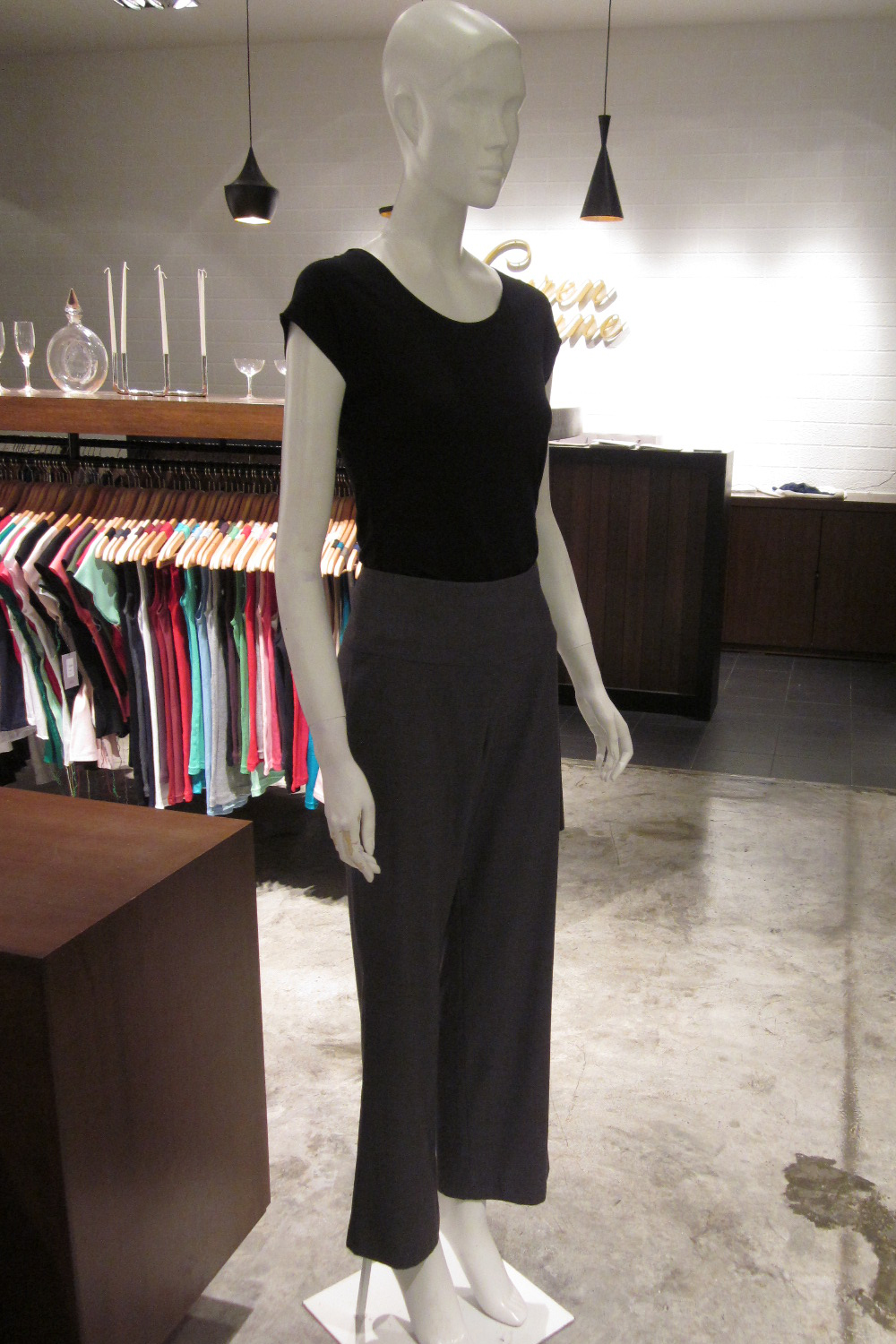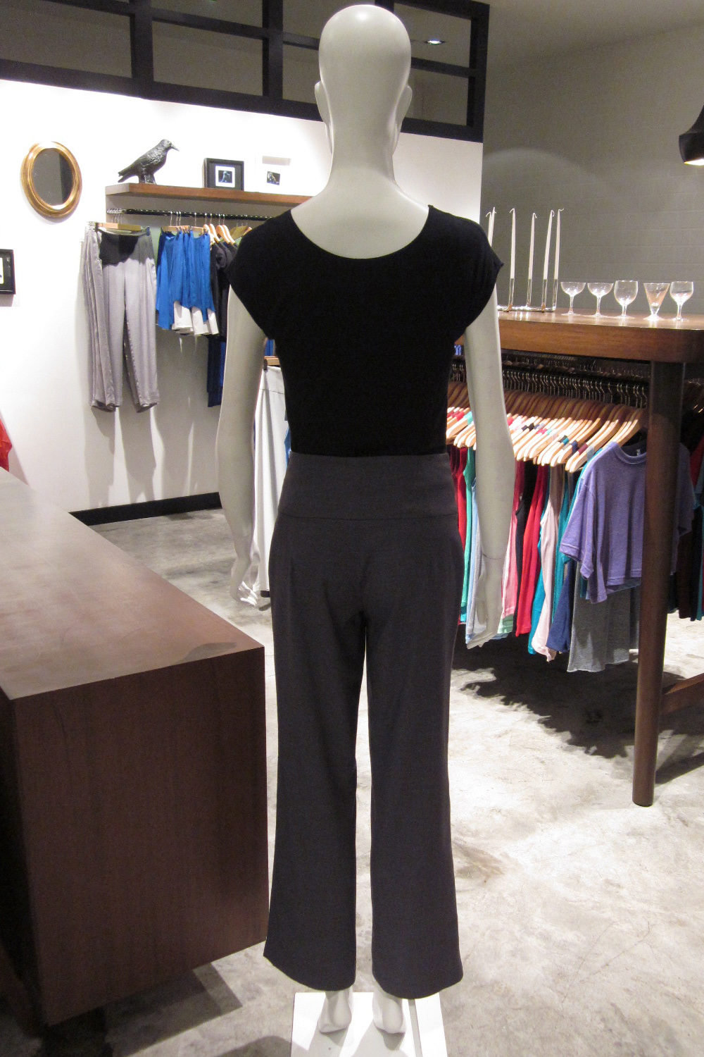 Flat front pants Wide waist band Wide leg Concealed side zip with hook and eye No pockets
