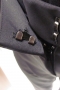 Straight leg pants Features piping that runs across the back and curves down the front No pockets Single hook closure with a zip at the front