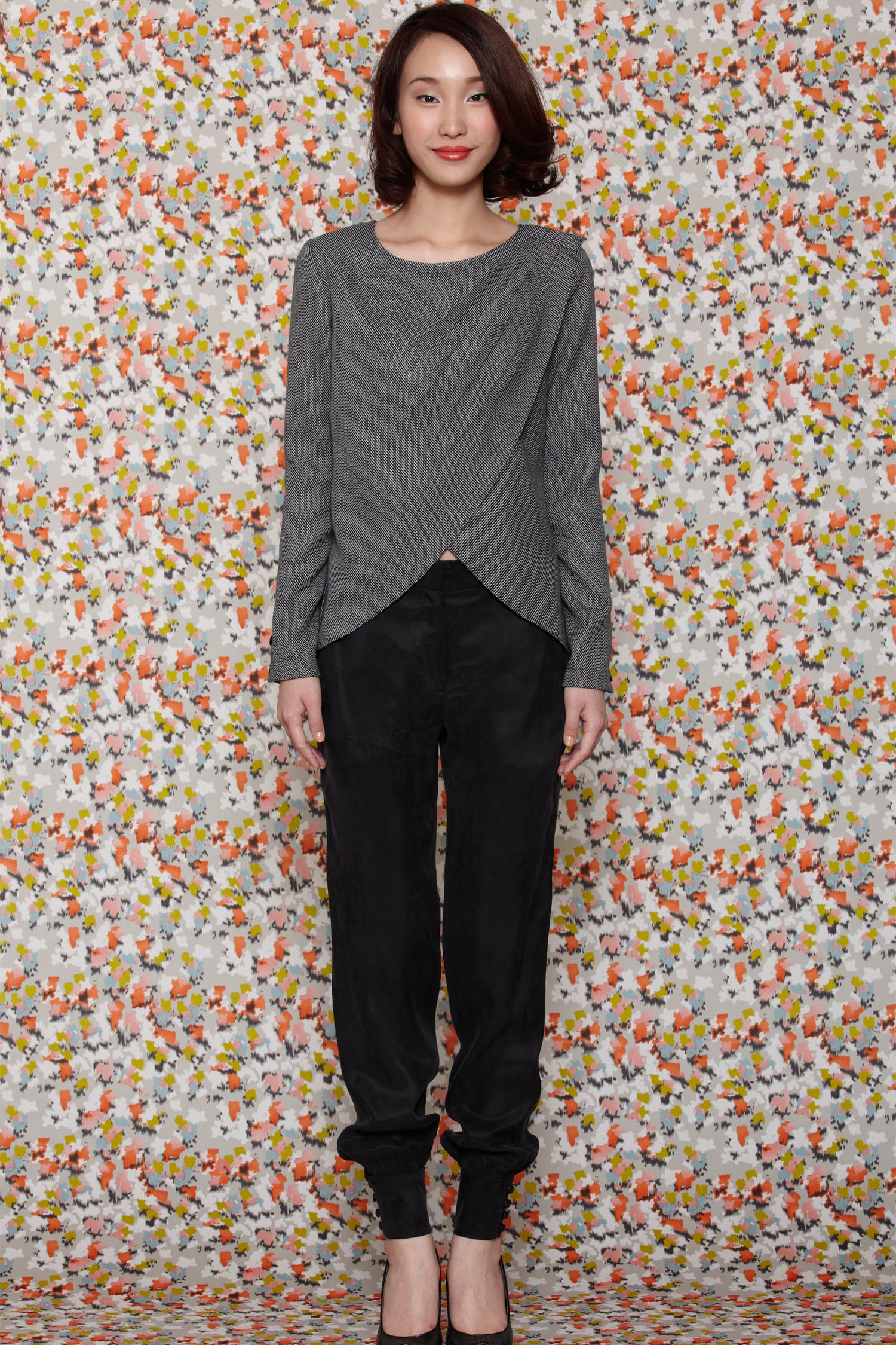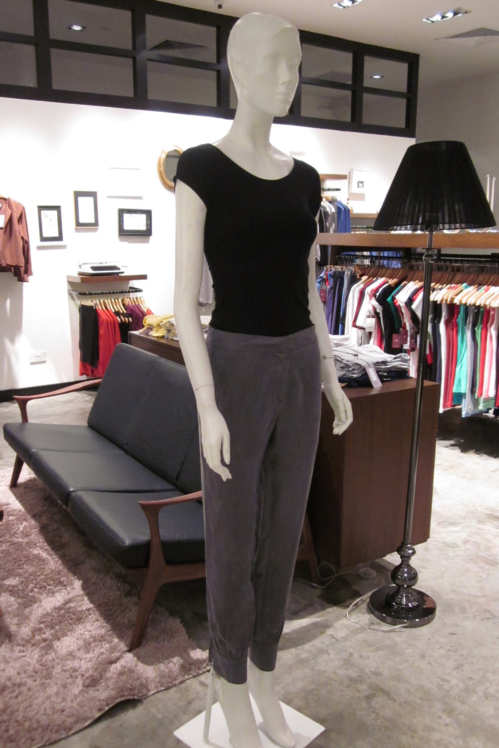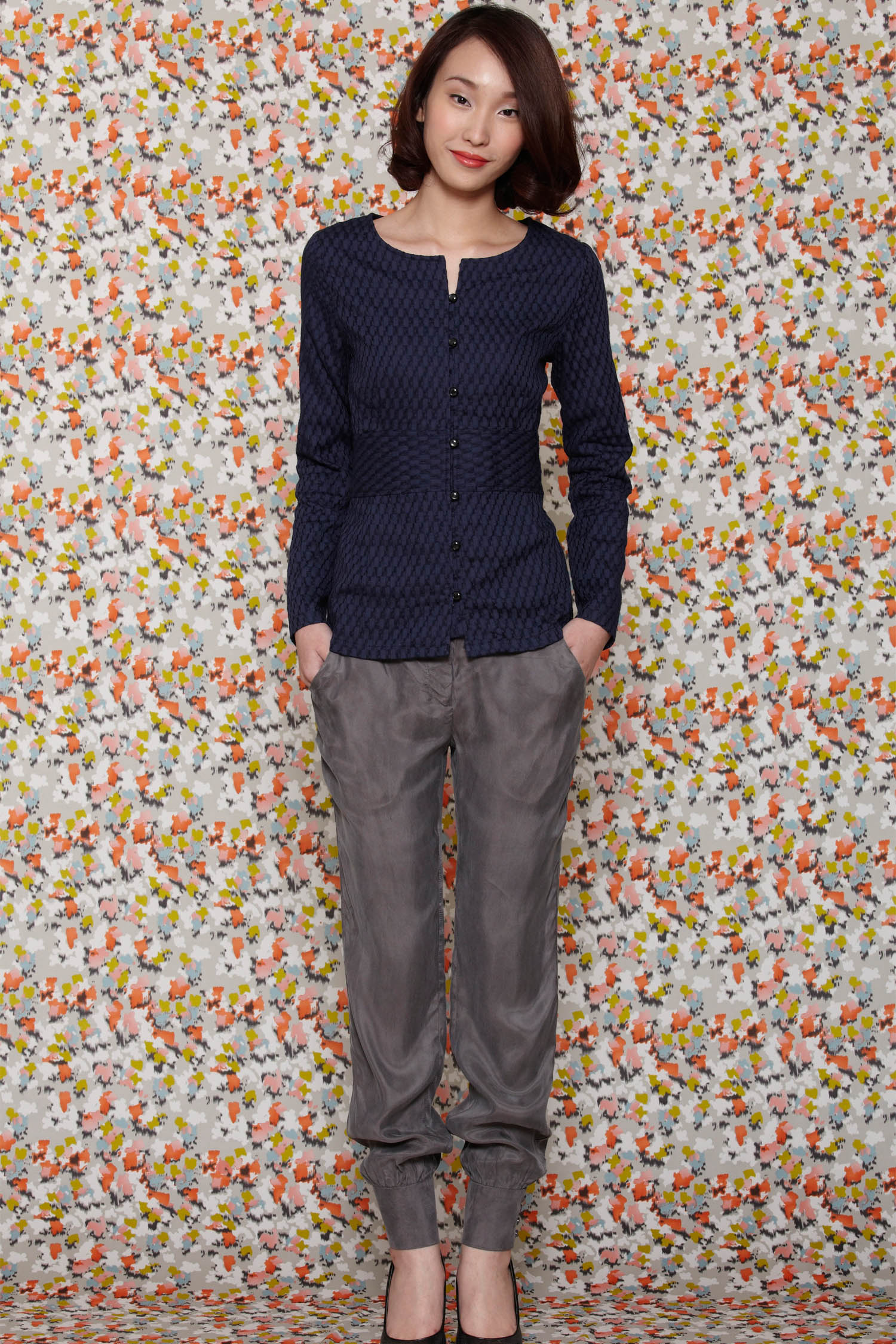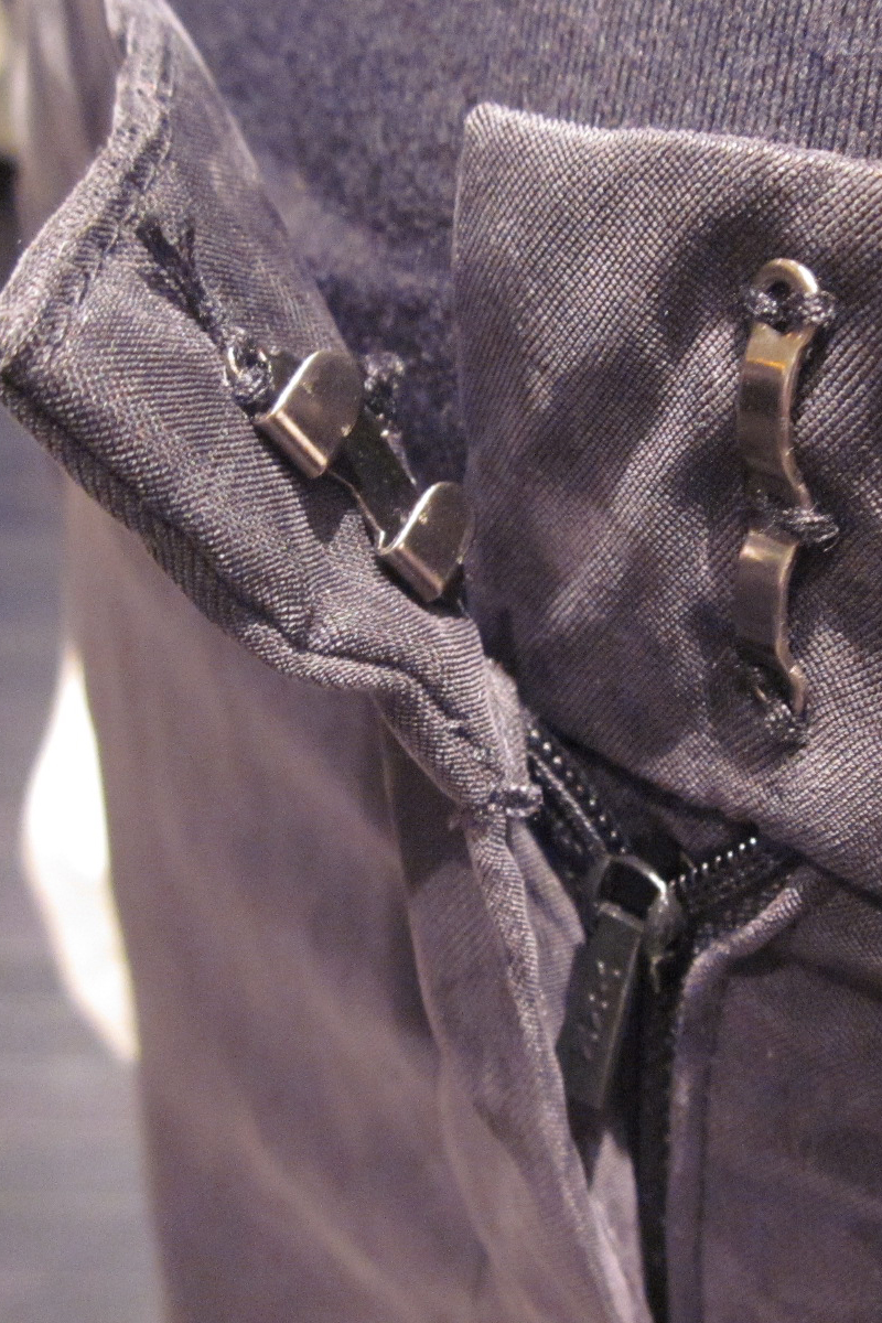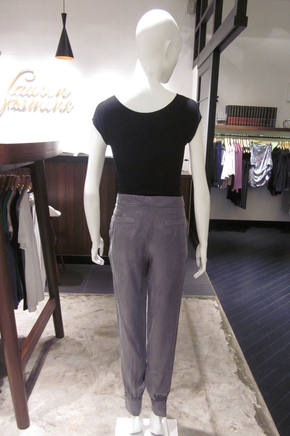 Cuffed pants Single hook closure with a zip at the front Wide cuffs at each ankle with 4 loop buttons 2 Side pockets 2 Horizontal pockets at the back