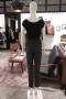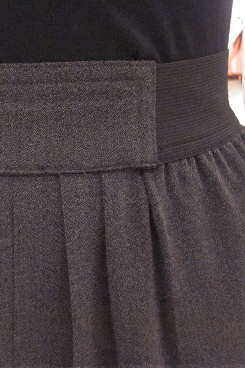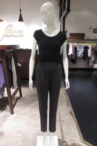 Waisted pants with a wide elastic band Contrast detail at the centre of the elastic band Pleats at the front 2 Side pockets Straight leg