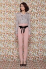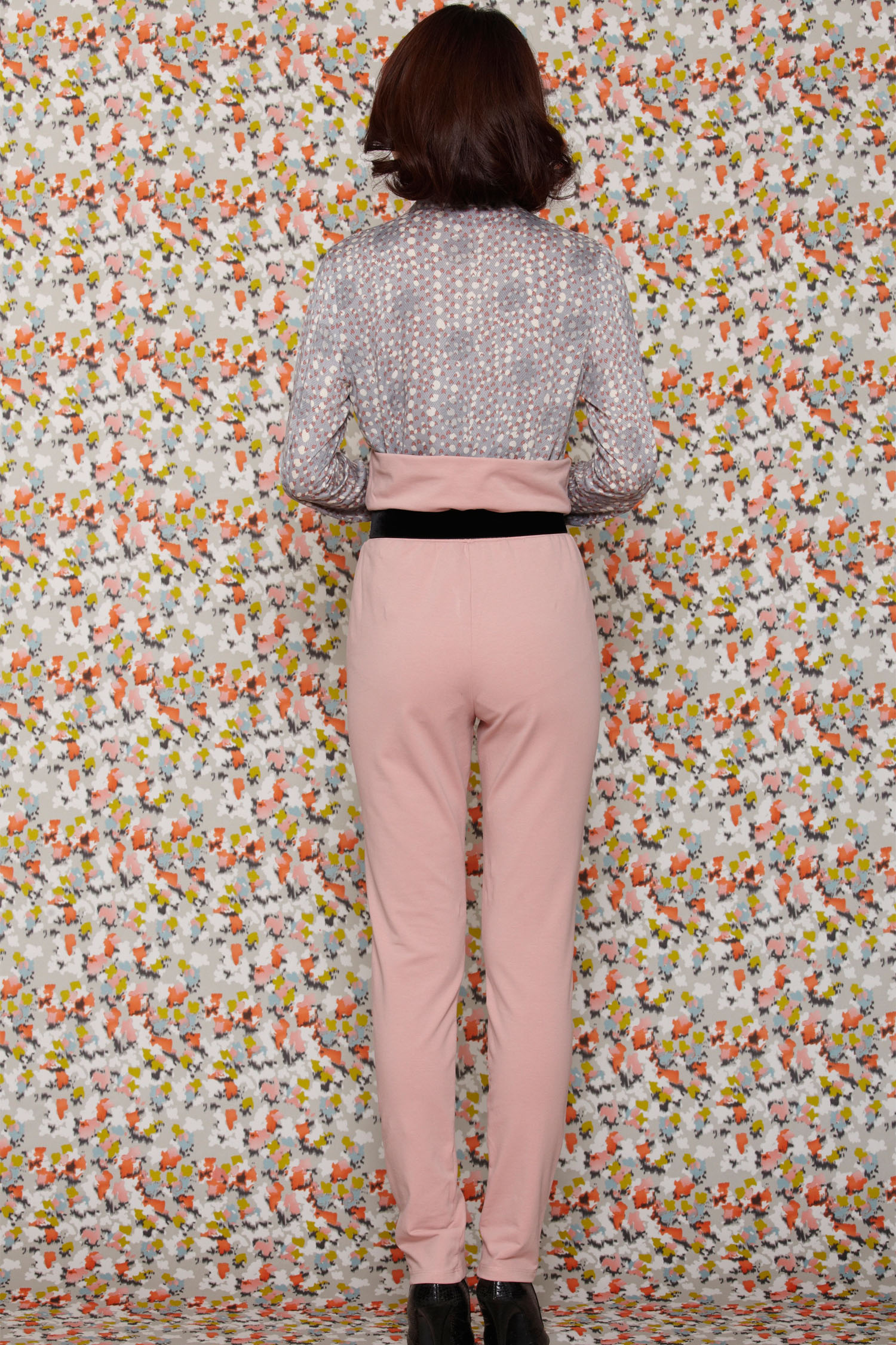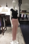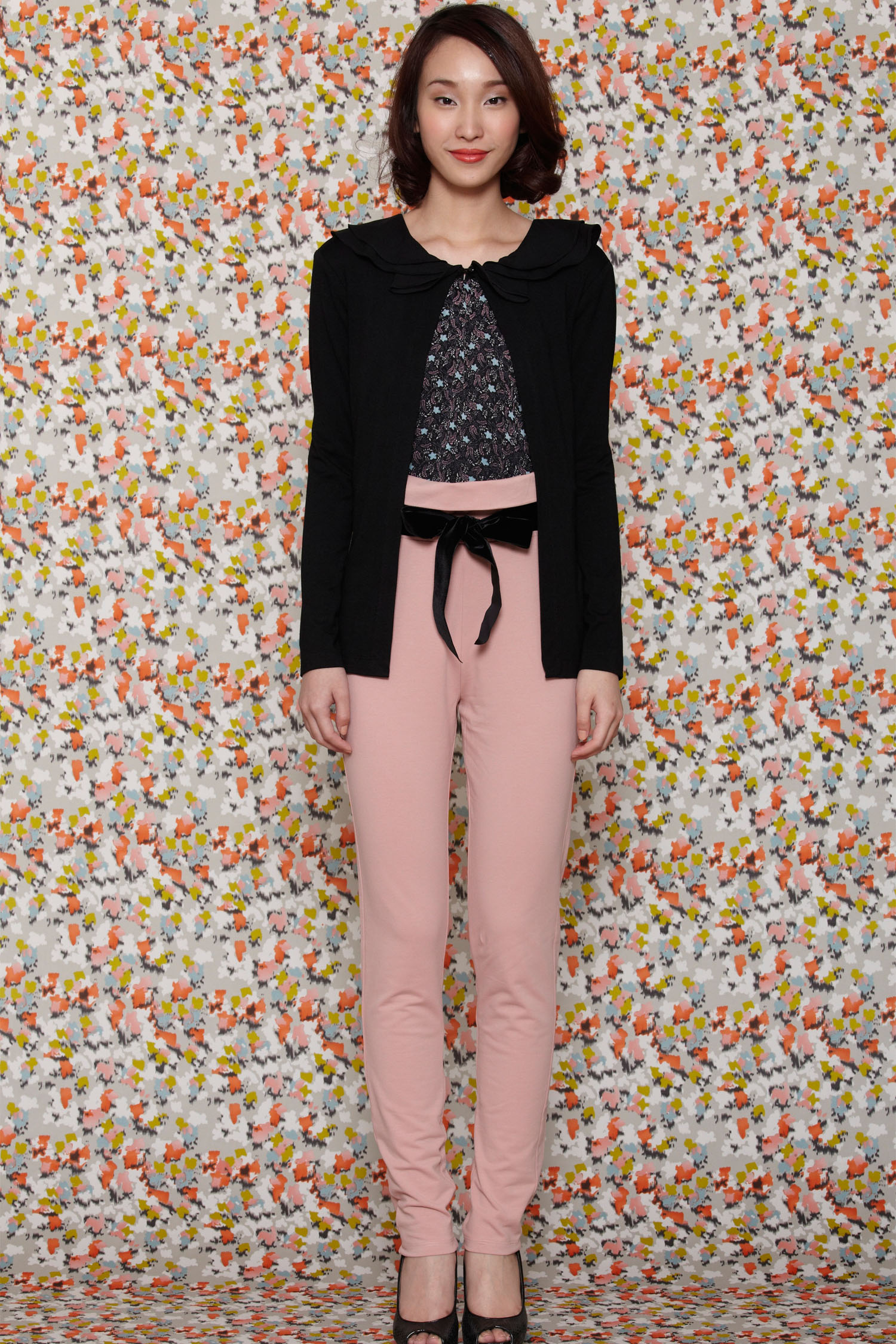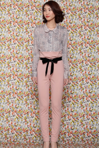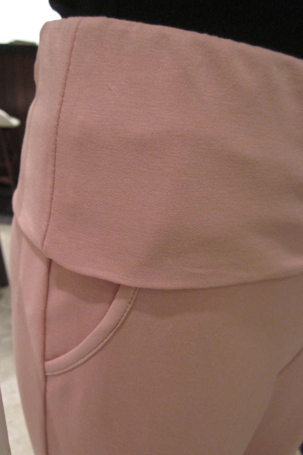 Straight-legged stretchy pants Elasticized wide waistband Foldover detail that can be worn up or folded down 2 Faux side pockets Belt not included