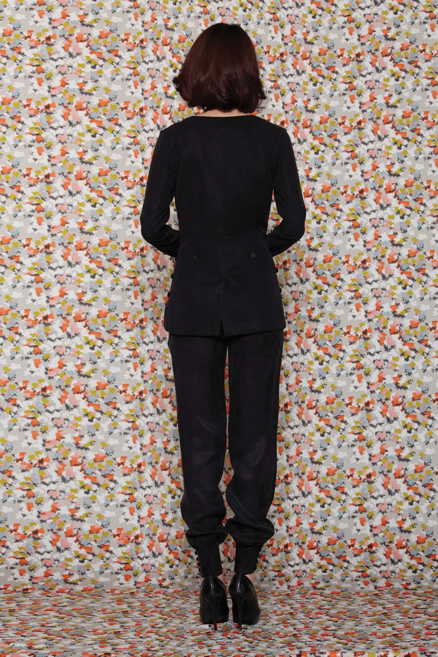 Also has 1 button on each side of the back to allow for the jacket to be buttoned at the back for a more fitted look