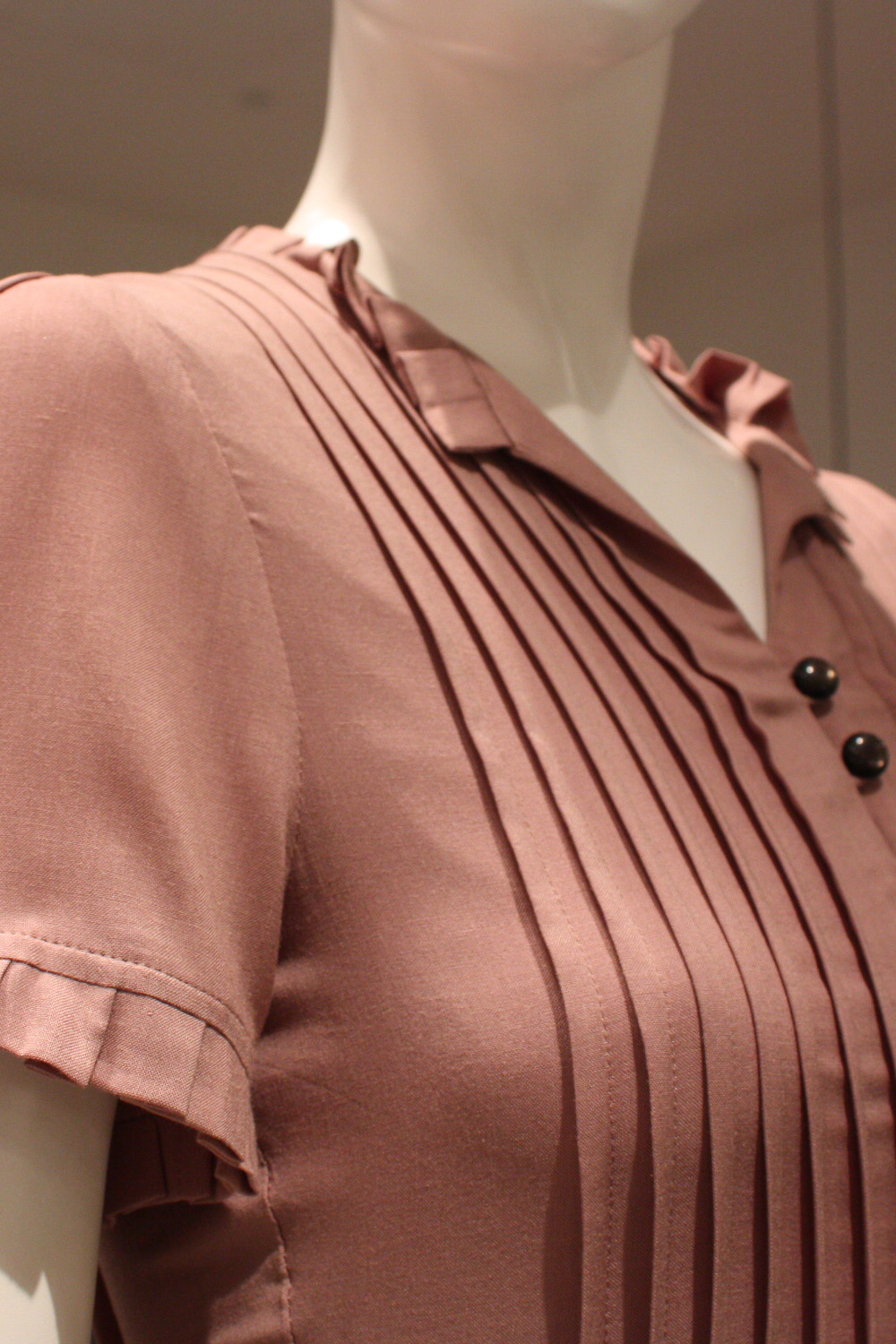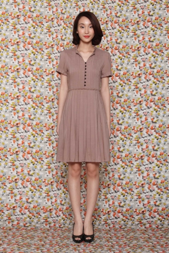 Short-sleeved dress with a ruffled collar and ruffled cuffs