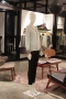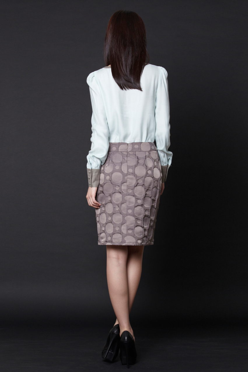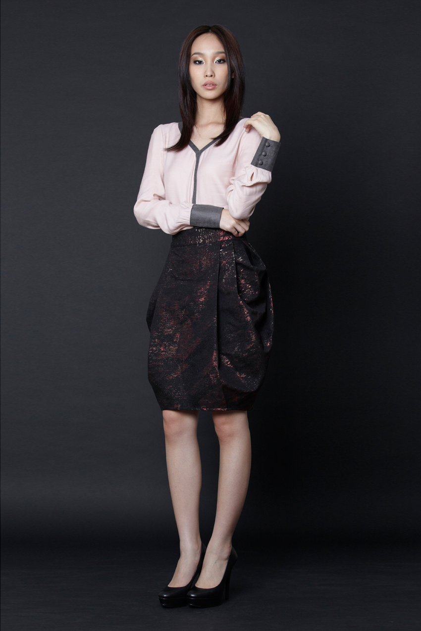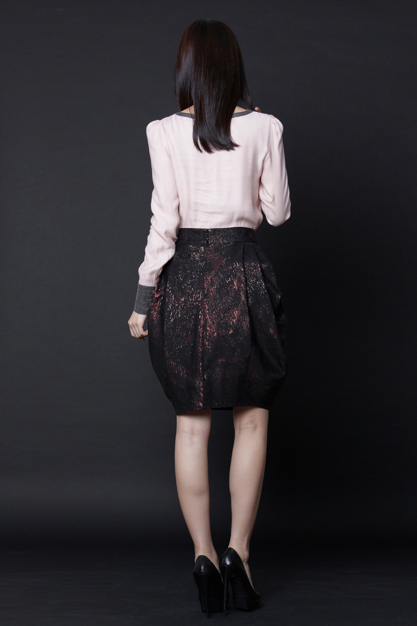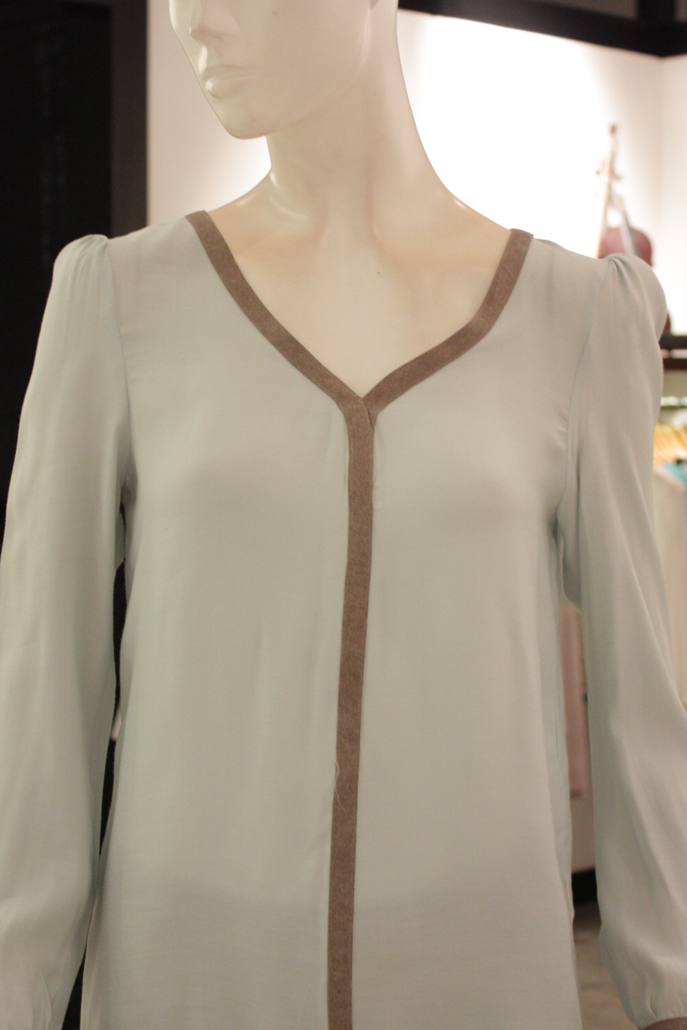 Two-tone long-sleeved loose fit blouse with a V neckline