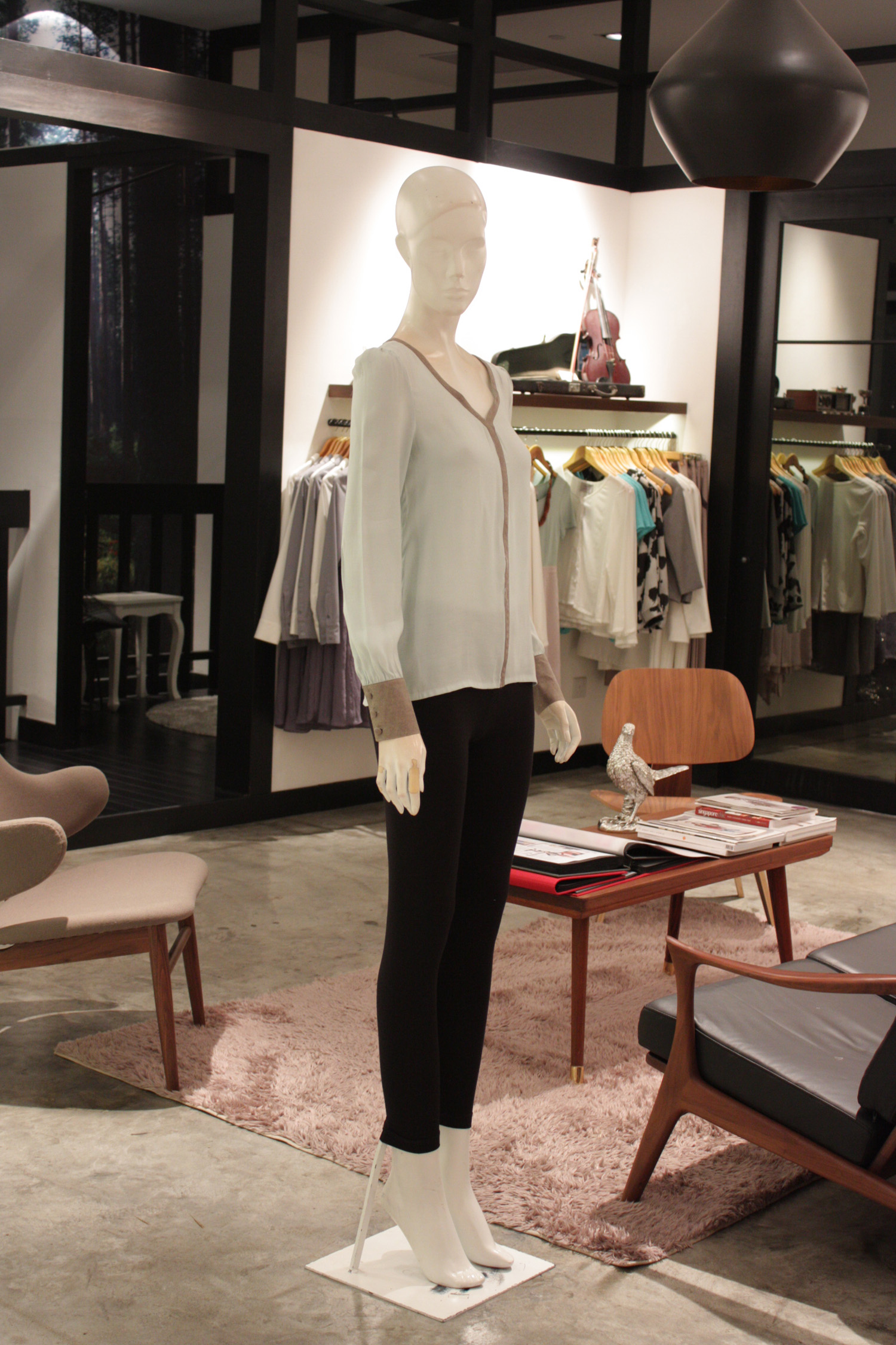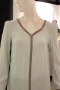 Contrast trim along the neckline and down the centre of the front