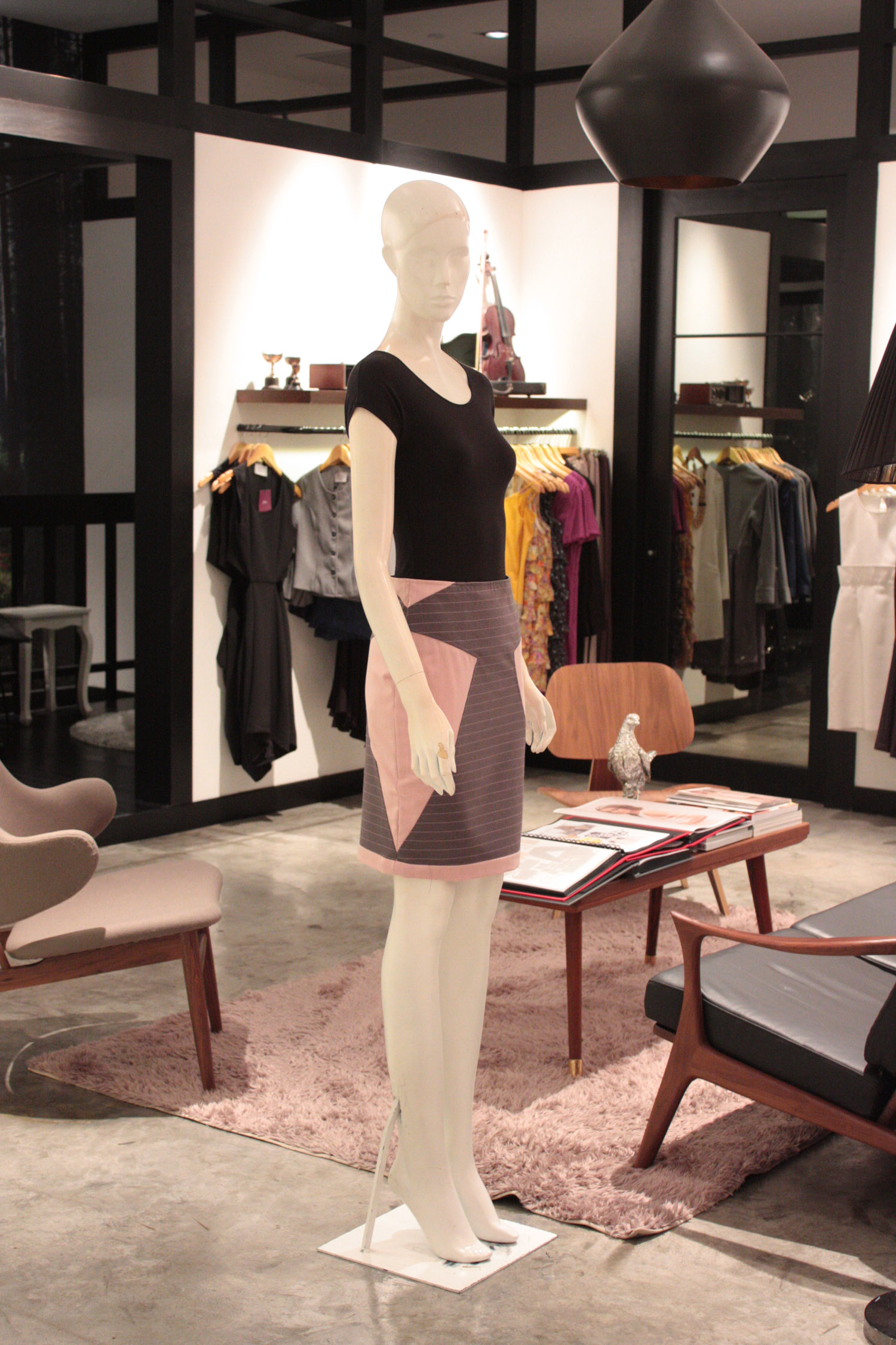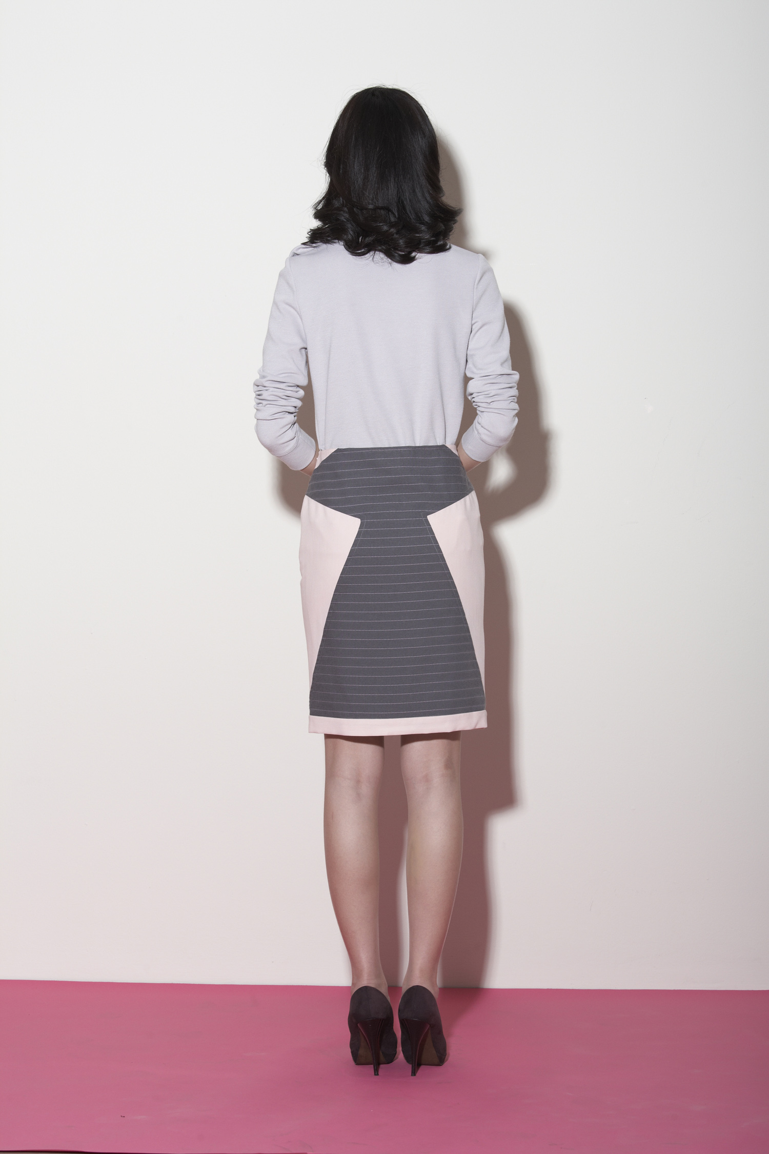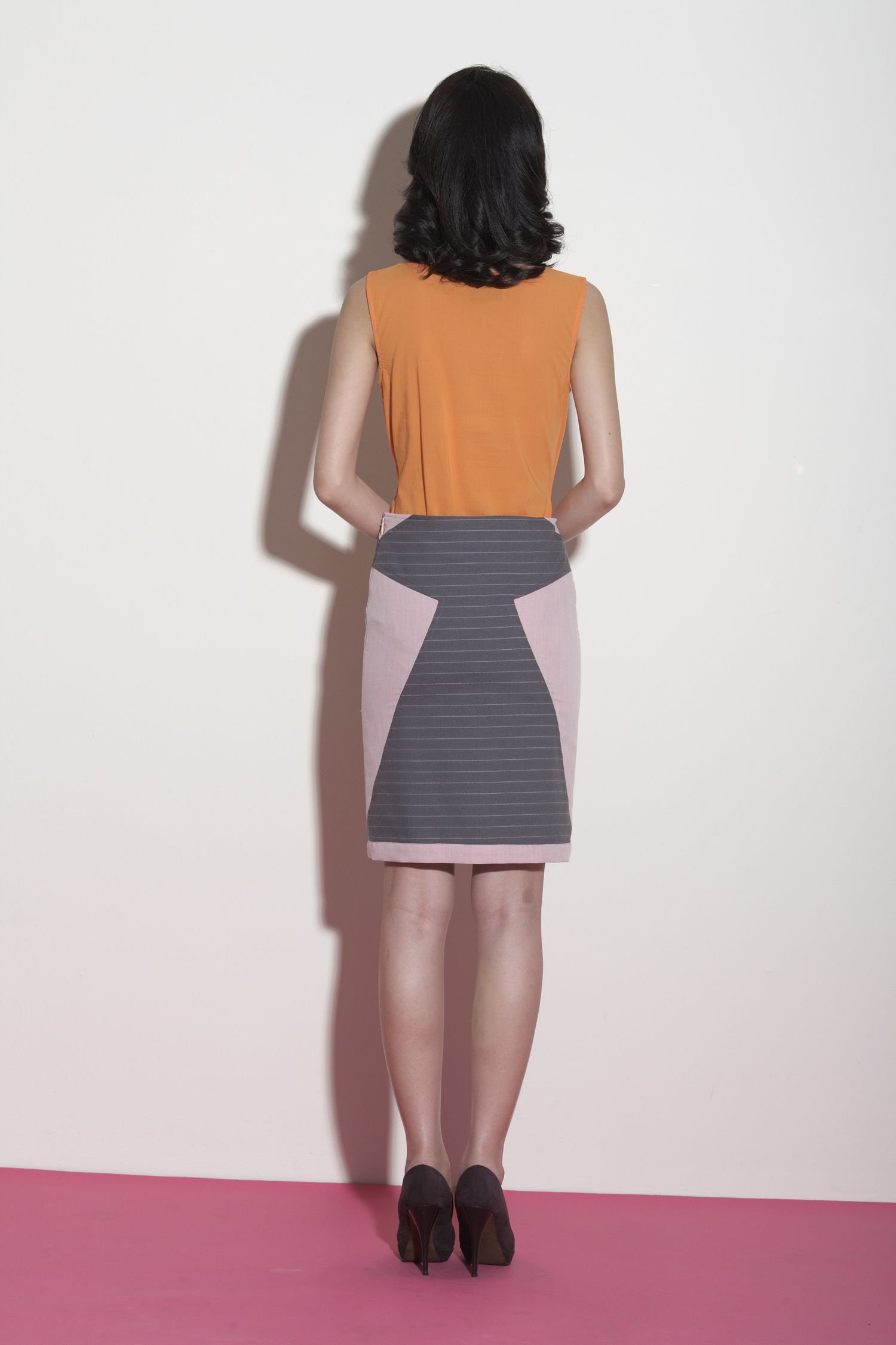 Two-tone pencil skirt Features an angular symmetrical design at the front and back Contrast striped detailing Concealed side zip with hook and eye Fully lined with acetate lining