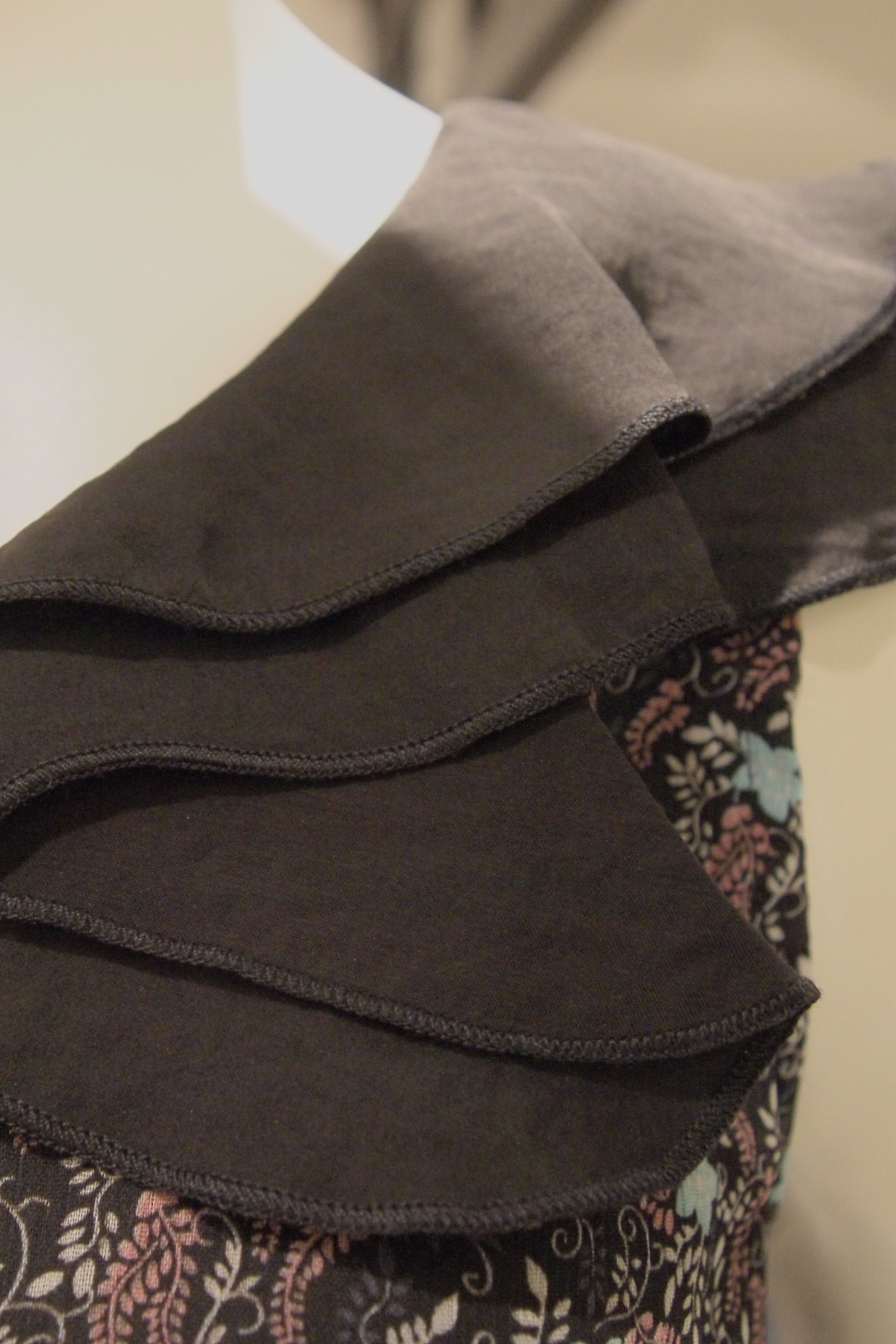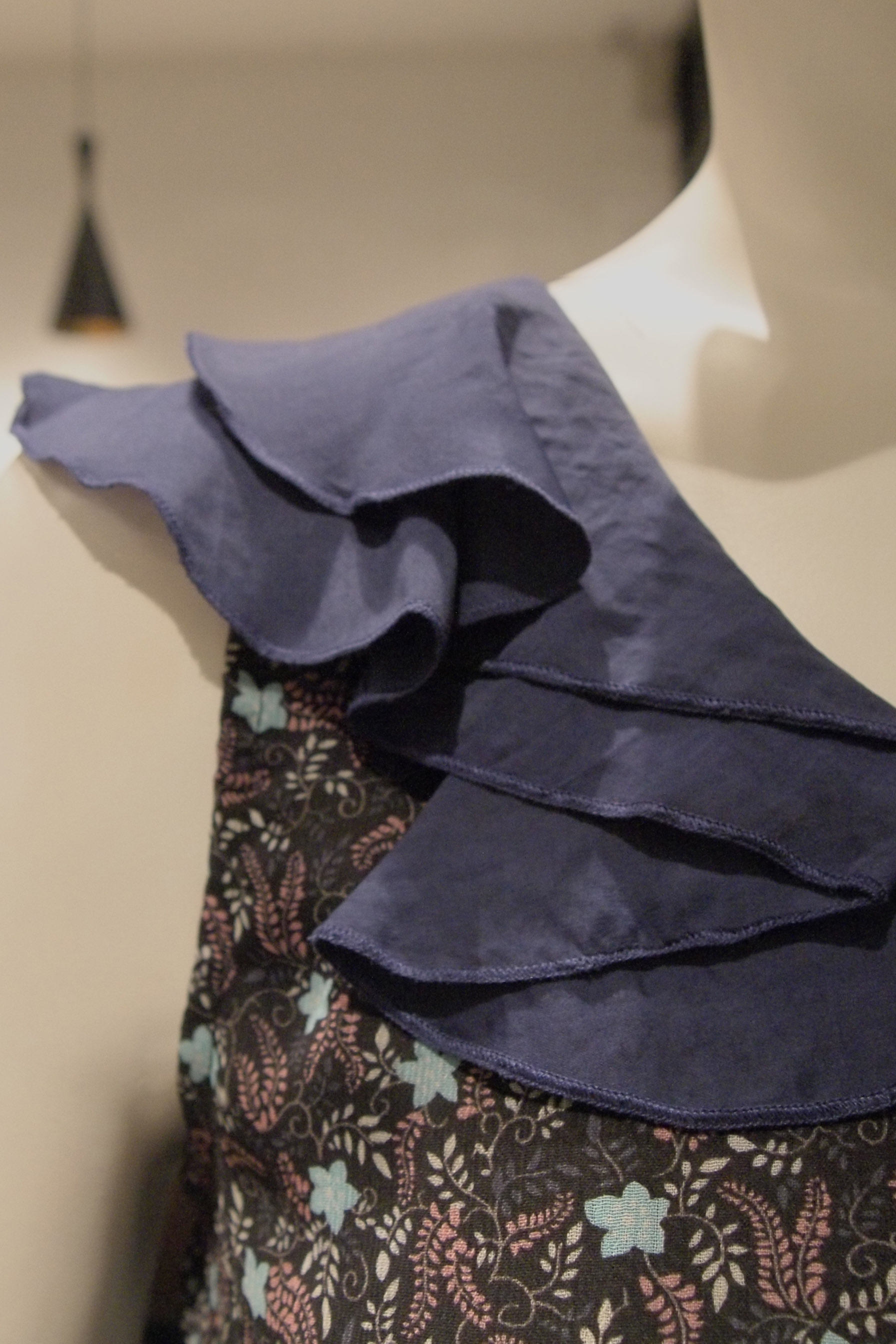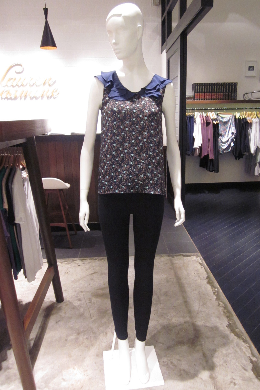 Floral printed sleeveless top Double layer of ruffles around the collar Fully lined with acetate lining
