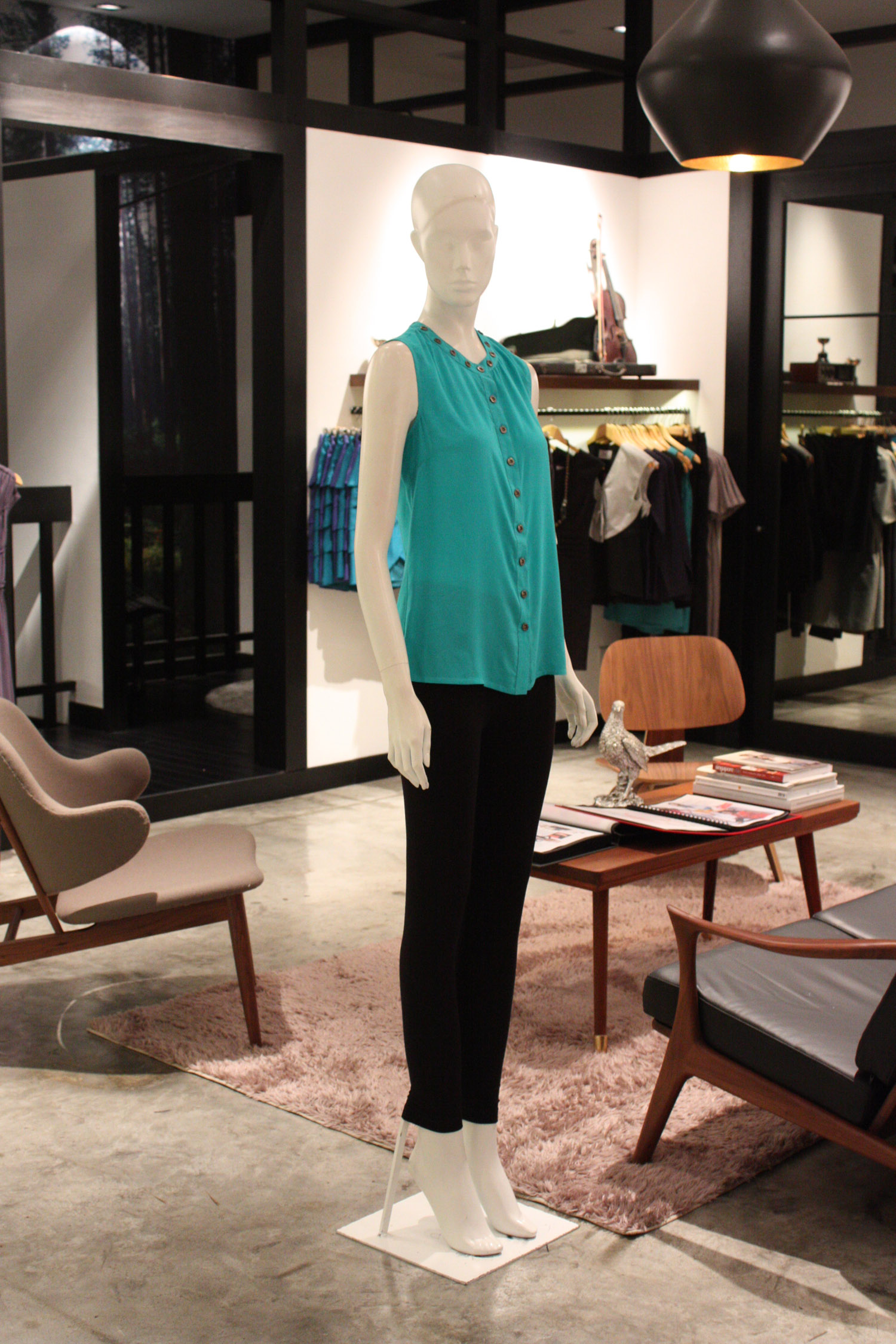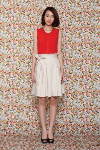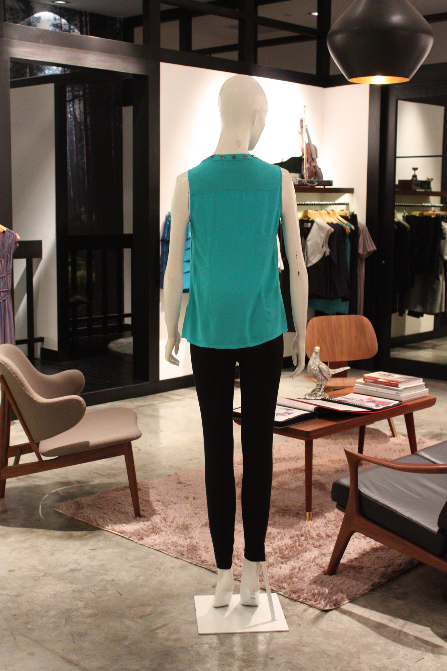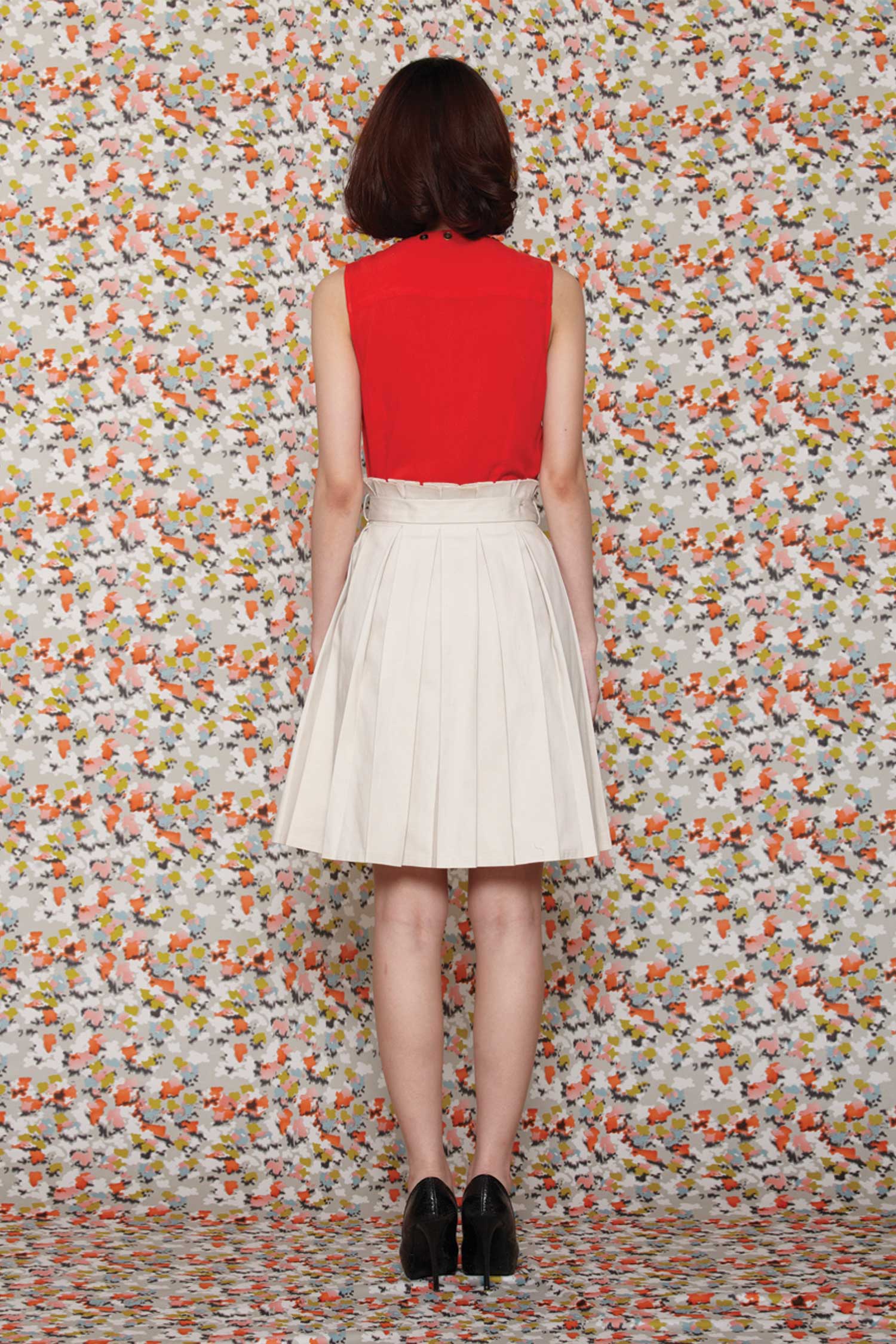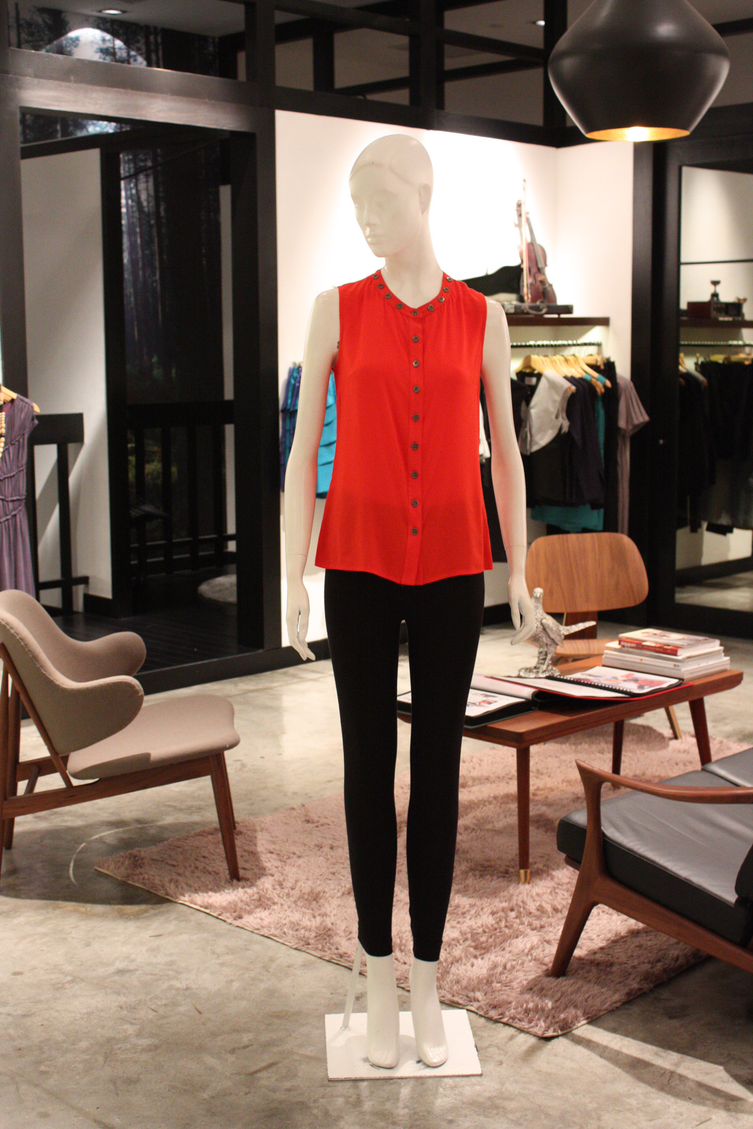 Sleeveless button down top Decorative buttons along the entire collar 9-Button closure at the centre front Loose fit