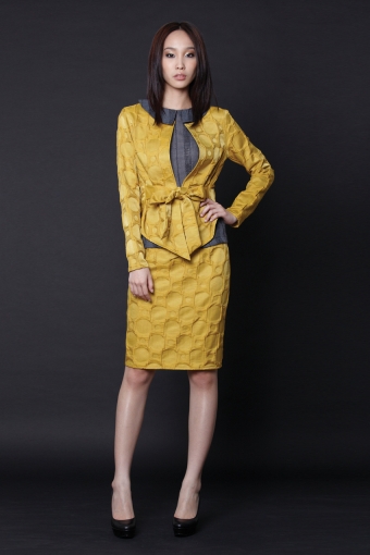 Long fabric ties are attached to the waist at each side