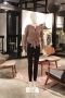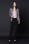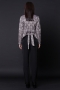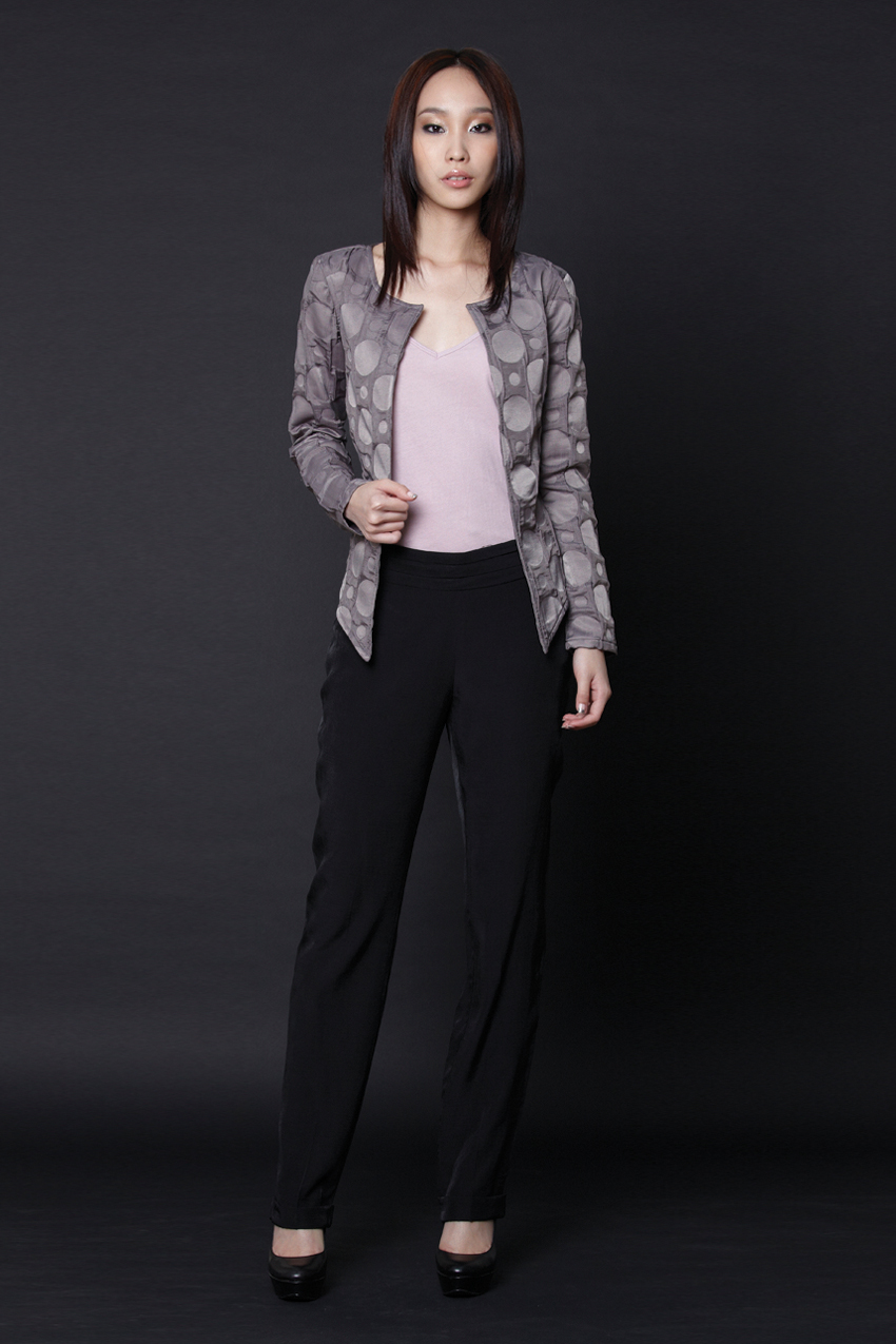Long-sleeved collarless open front top with no closure