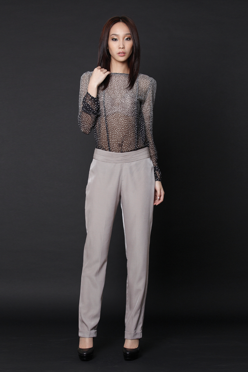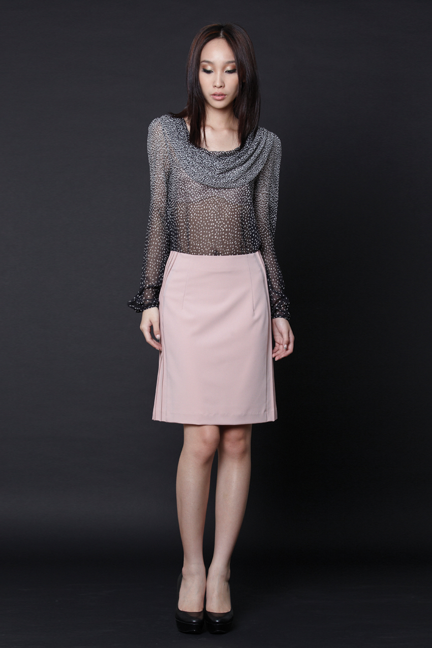 Long-sleeved reversible loose fit top in a sheer printed fabric One side: features a cowl neckline One side: features 2 vertical pintucks Single loop button with a keyhole closure on each cuff Concealed side zip