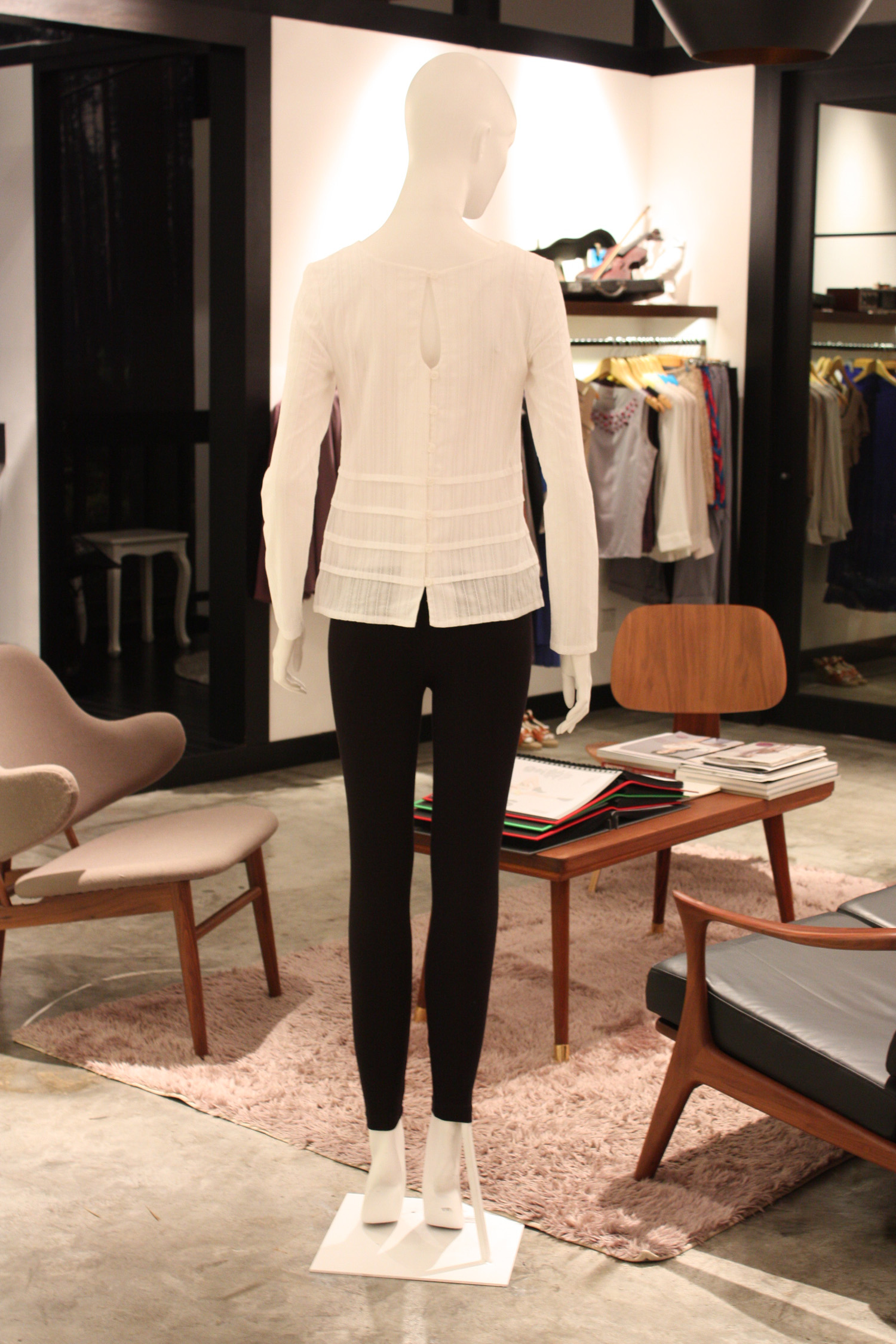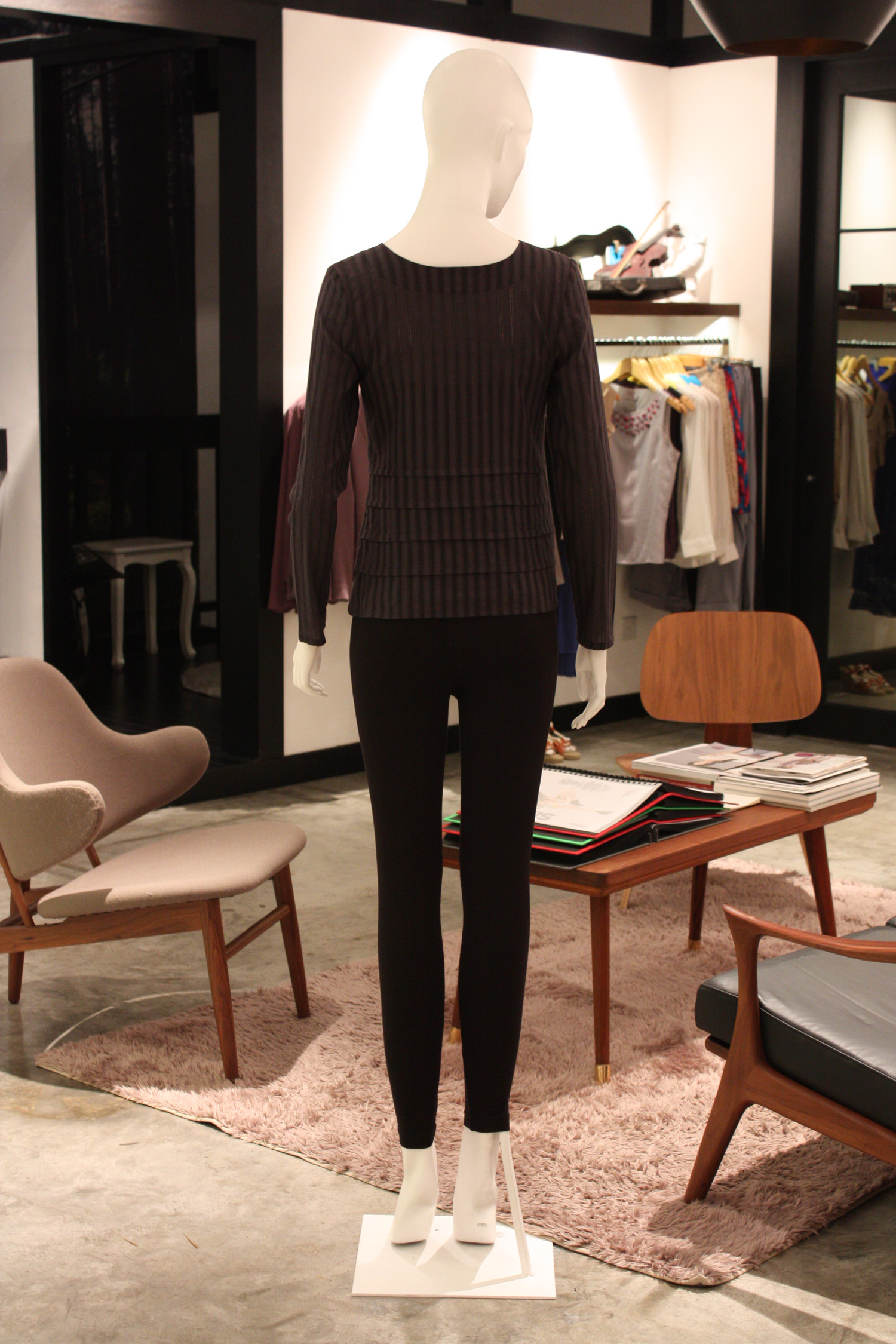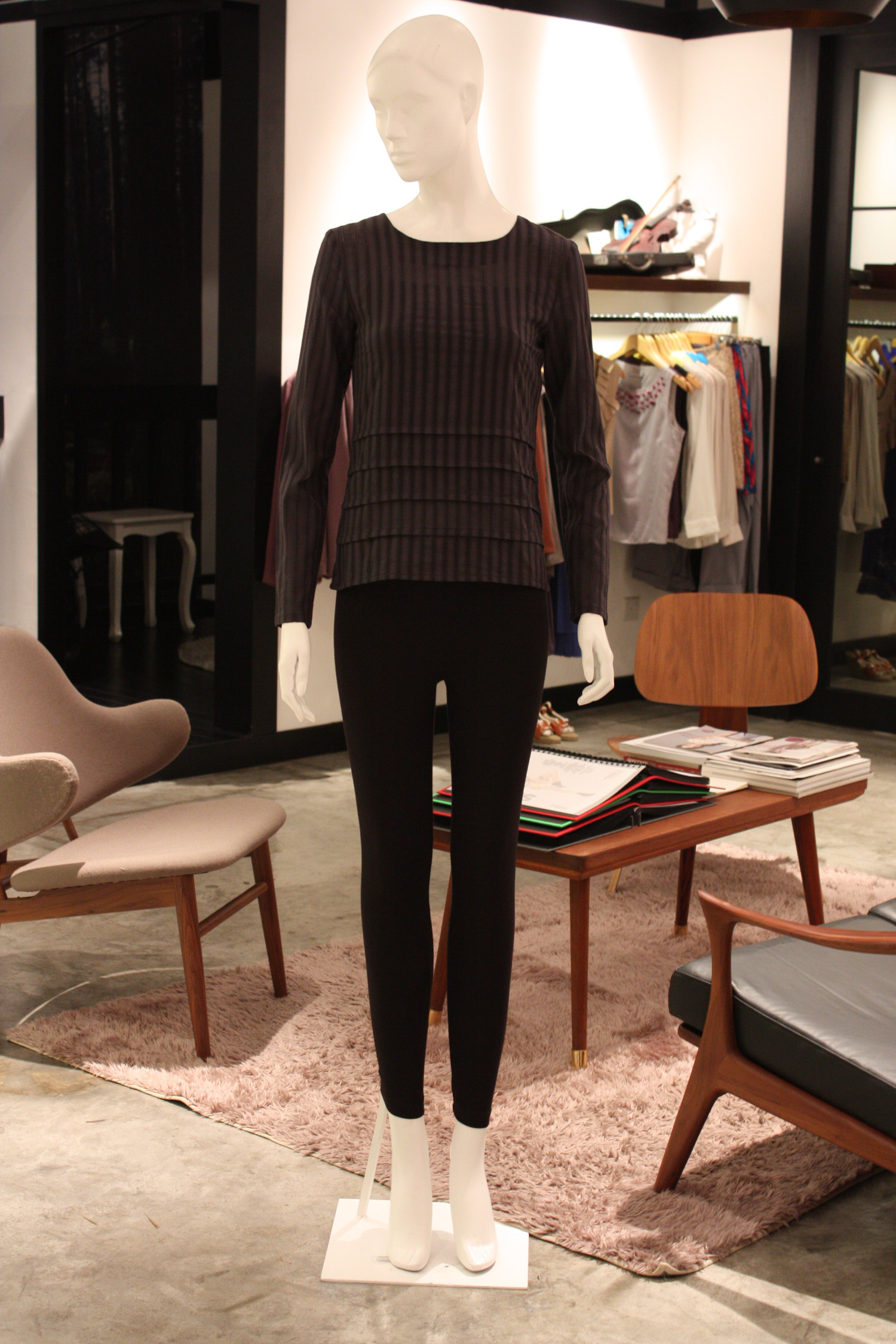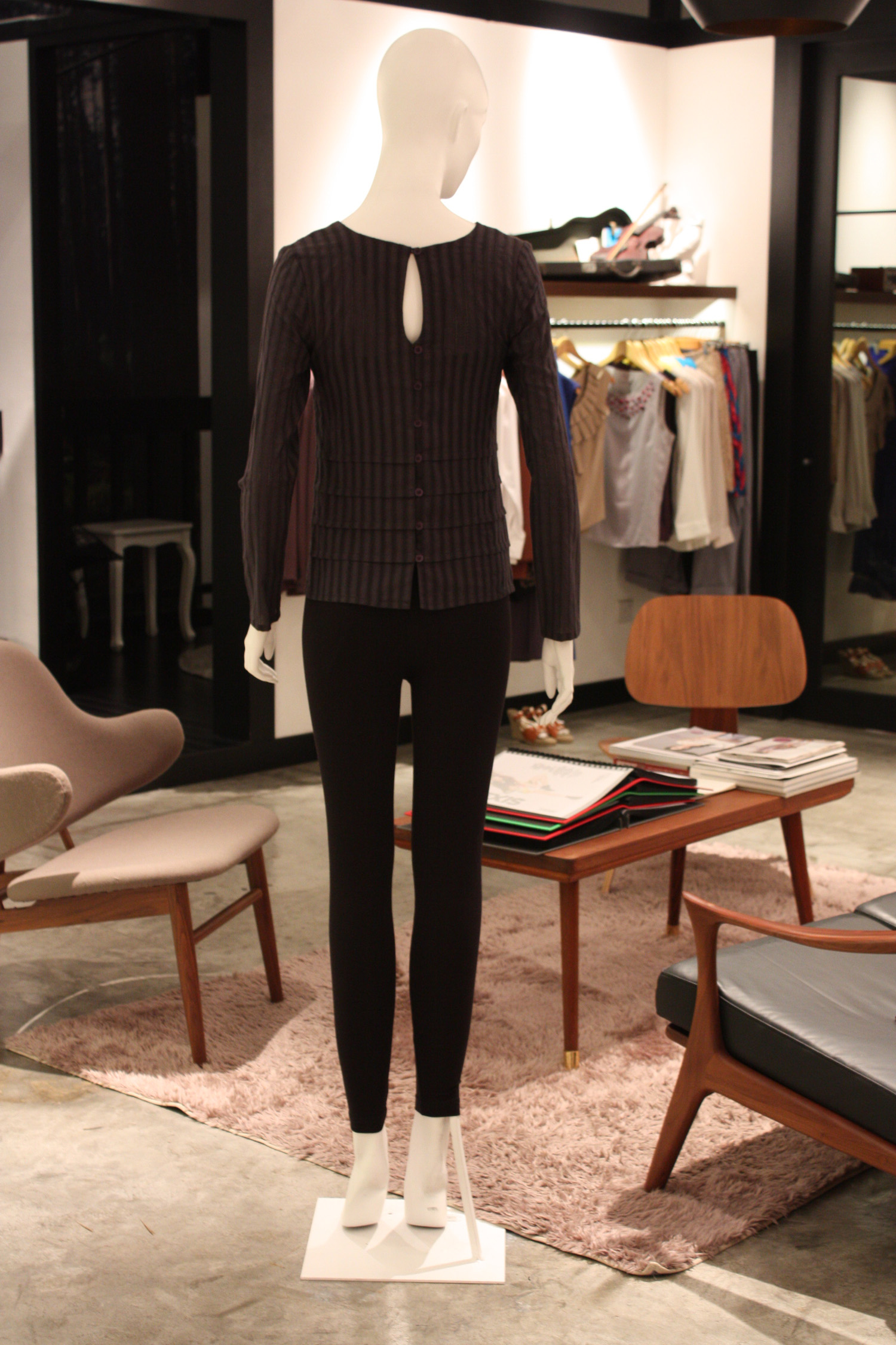 Reversible long sleeved top with horizontal pleats along the bottom of the front and back
