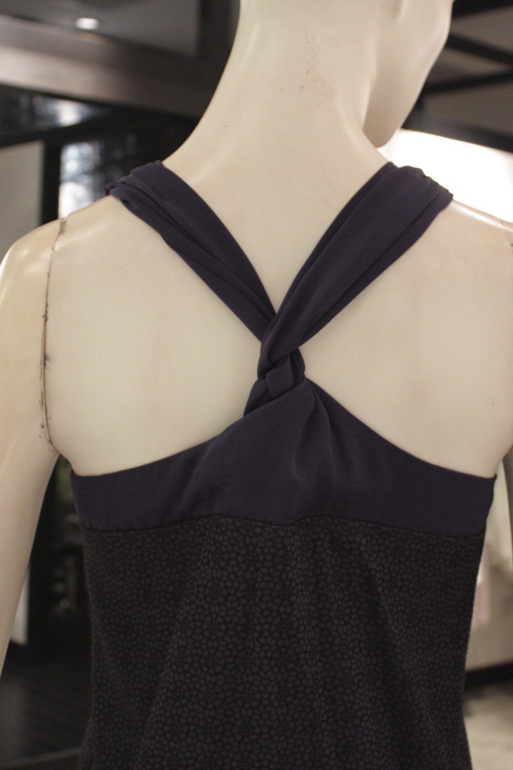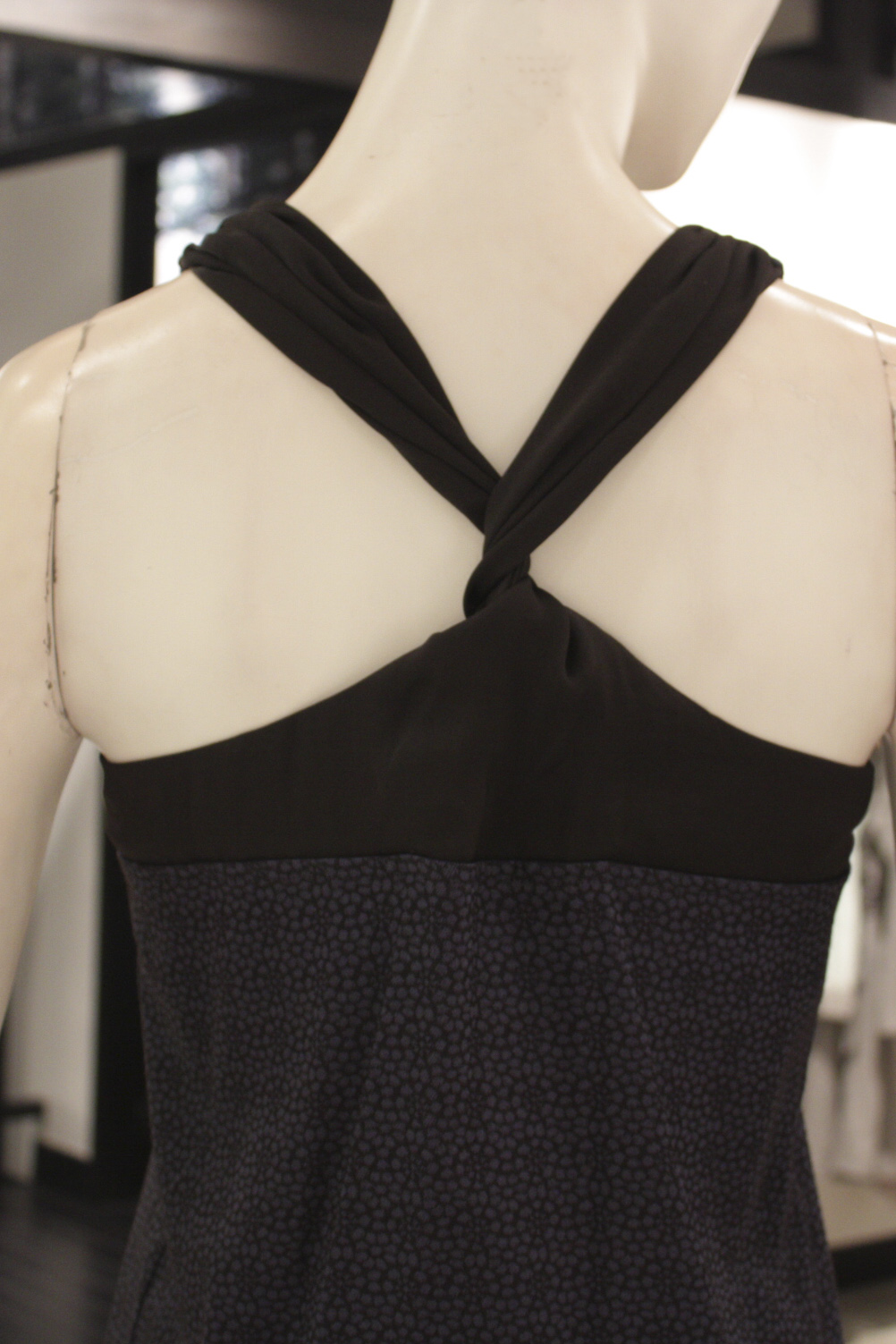 Printed halter top with a round neckline The printed fabric has a textured effect Features a twisted detail at the back For the black version, the contrast twisted detail at the back is black