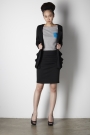 Asymmetrical overlay top A sheer overlay drapes across the top Sleeveless Concealed side zip