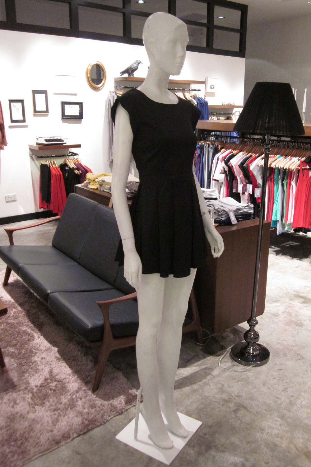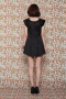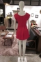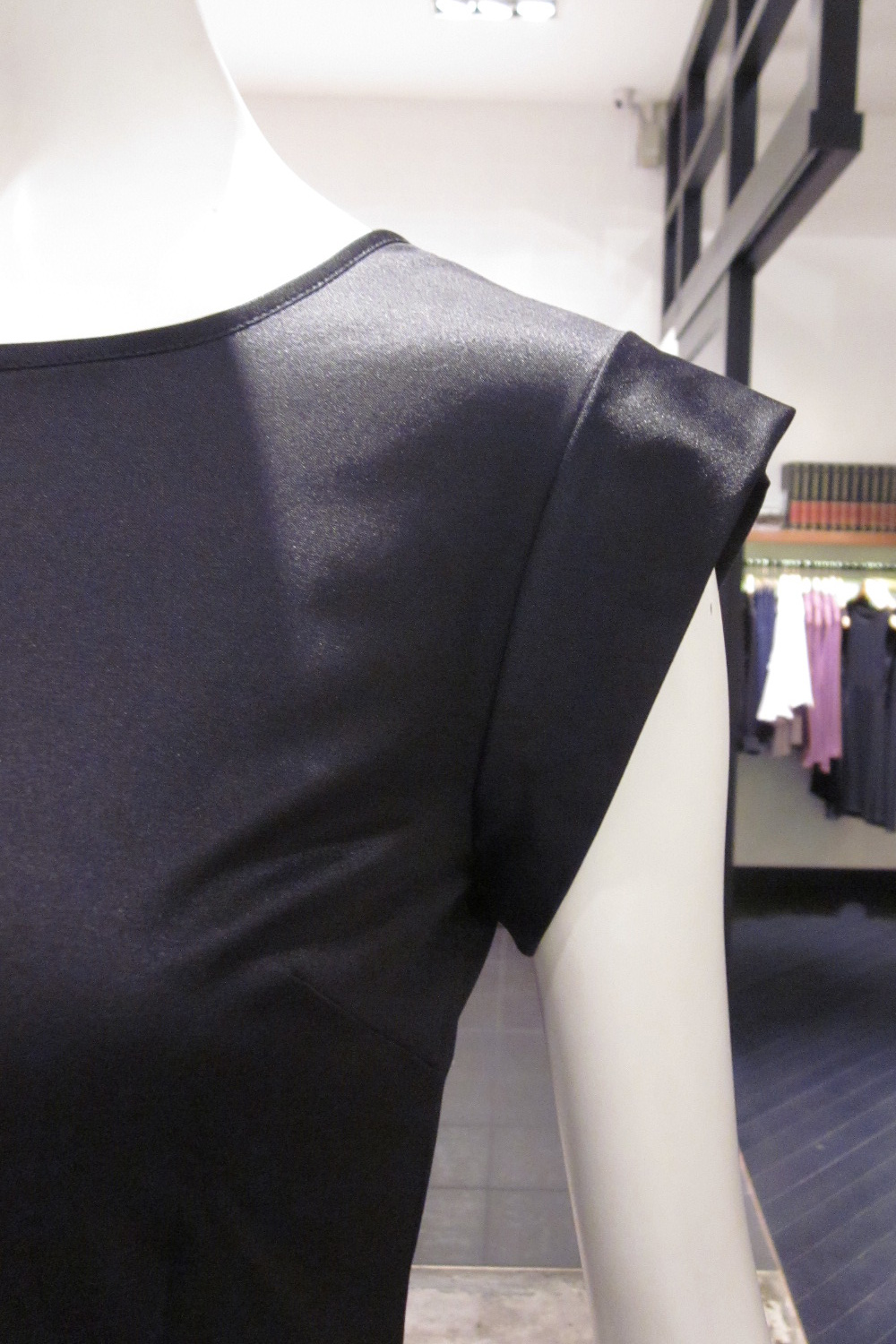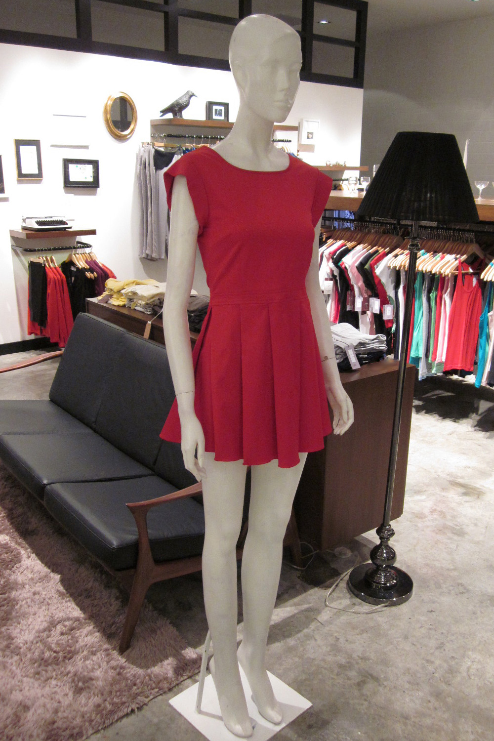 Waisted sleeveless tunic Extended cuffs at each sleeve Pleated skirt below a narrow waistband Rounded hemline Concealed centre back zip with hook and eye